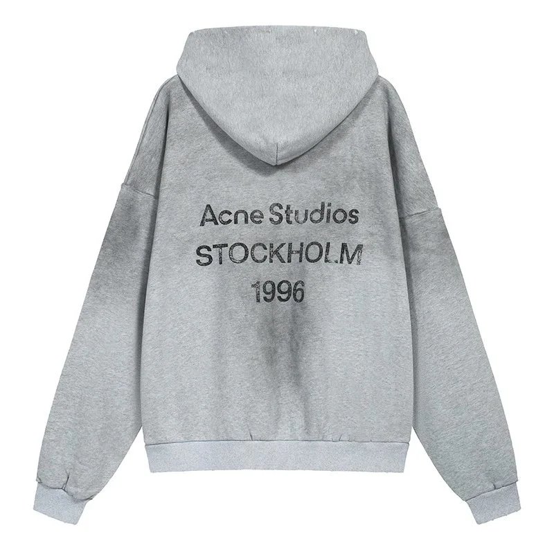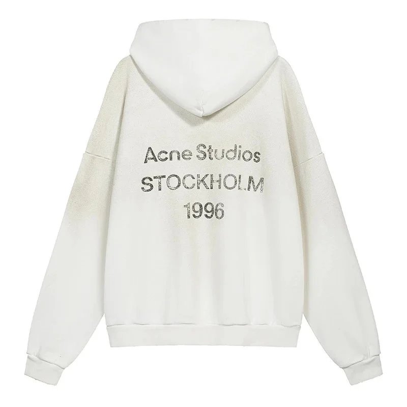 A premium white Acne Studios hoodie featuring bold 'Stockholm 1996' graphic print on the back. Perfect for casual wear with a minimalist Scandinavian aesthetic.