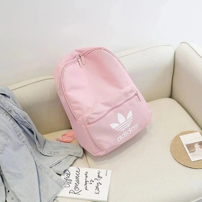Vibrant red Adidas Originals backpack featuring the iconic white trefoil logo and front zippered pocket. Ideal for students and everyday use with a classic, functional design.