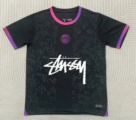 Adidas x Stussy Argentina 'Flower' Football Jersey featuring a dark blue base with floral graphics and Stussy branding. Limited edition design for fans of collaborative sportswear.