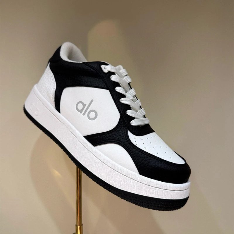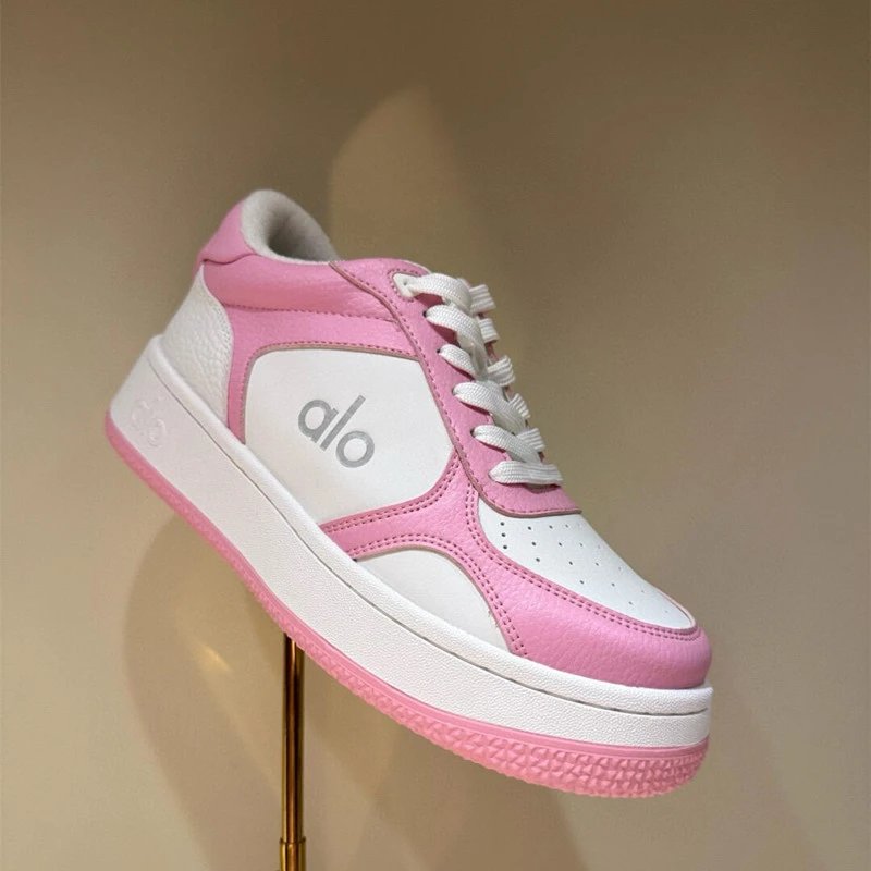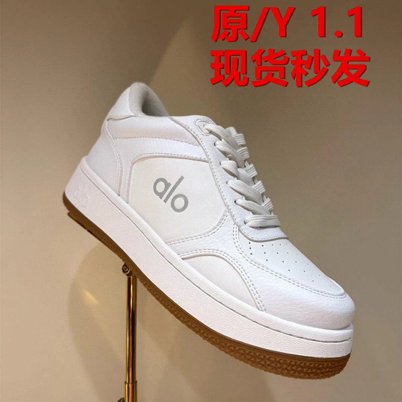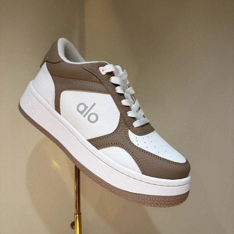 Step into comfort and style with Alo's sleek white low-top sneakers featuring a classic gum sole and minimalist design.