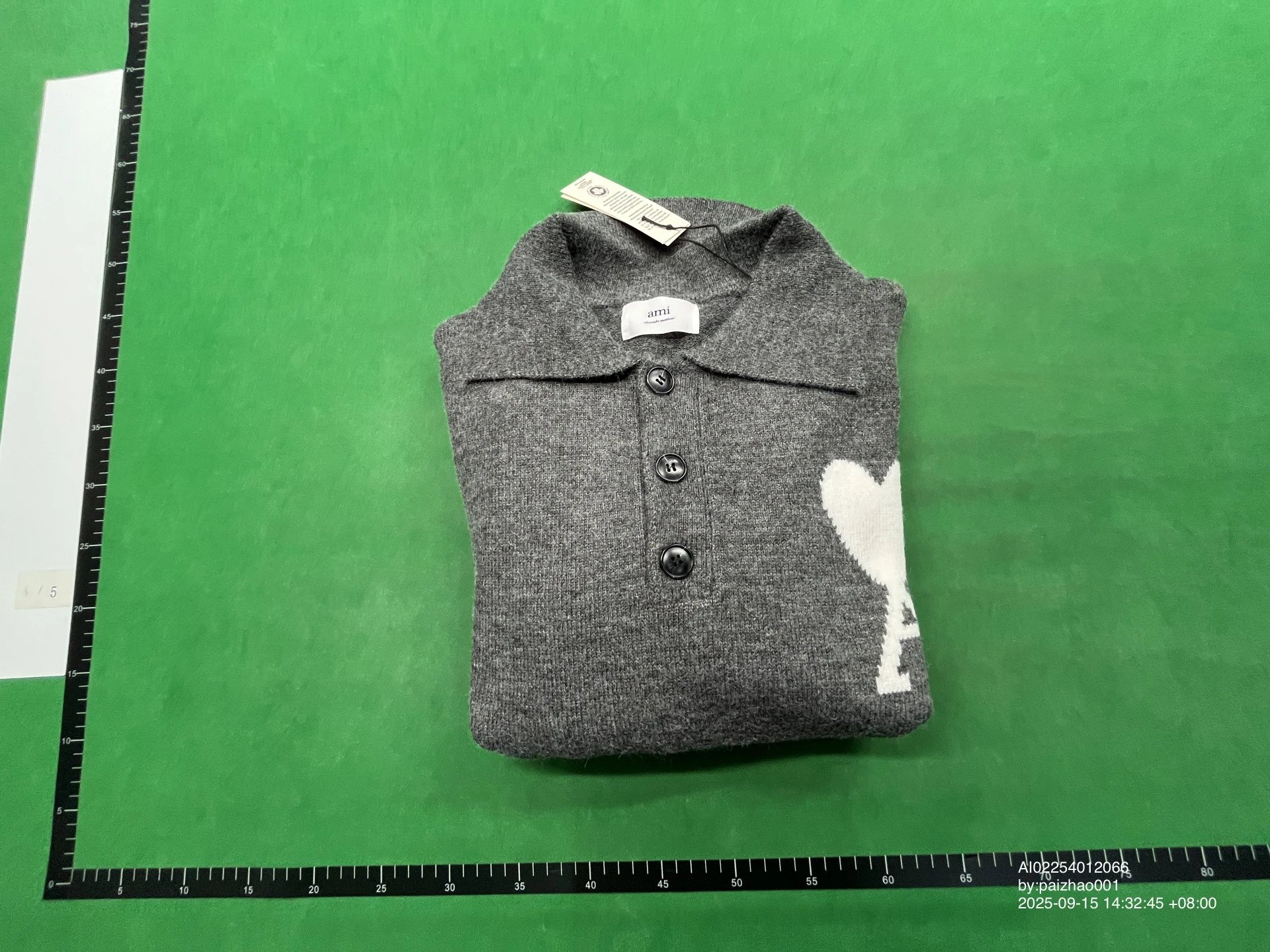 Elevate your wardrobe with this Ami Paris black knit sweater featuring a bold red heart logo. Perfect for casual or smart-casual styling.
