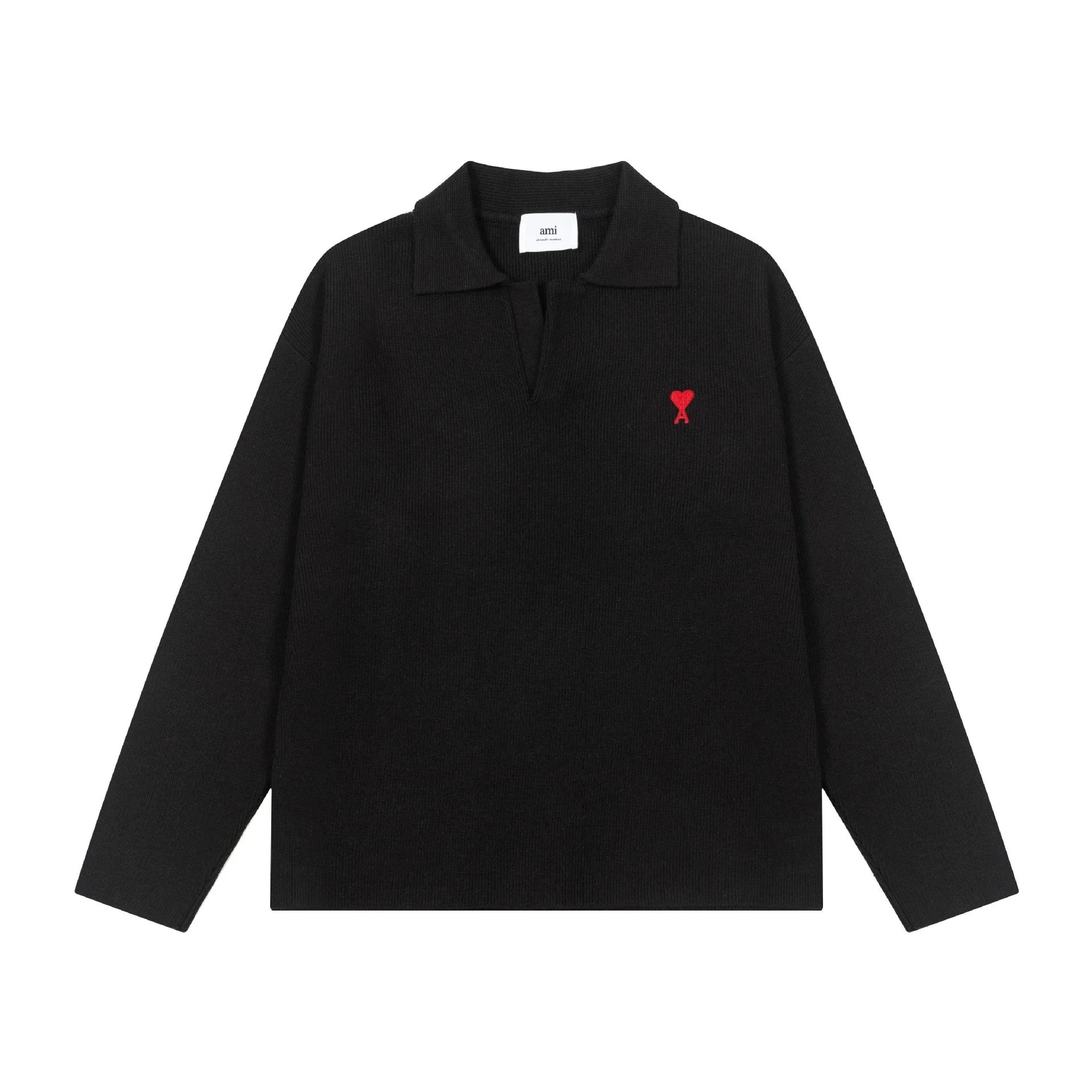 Elevate your wardrobe with Ami Paris's iconic long sleeve polo shirts featuring a signature red heart logo and premium ribbed knit fabric in classic black and white.