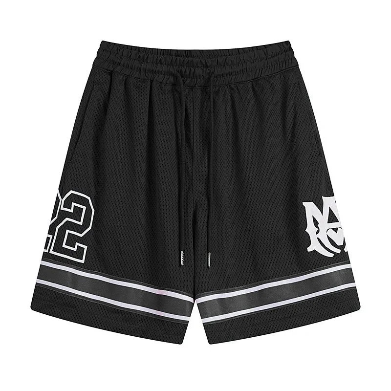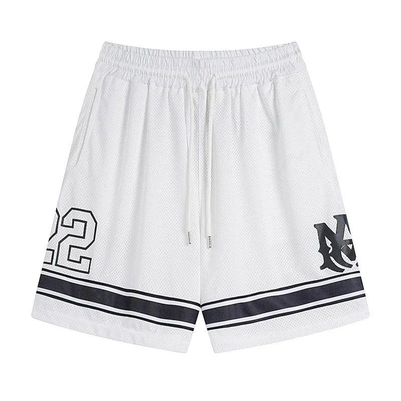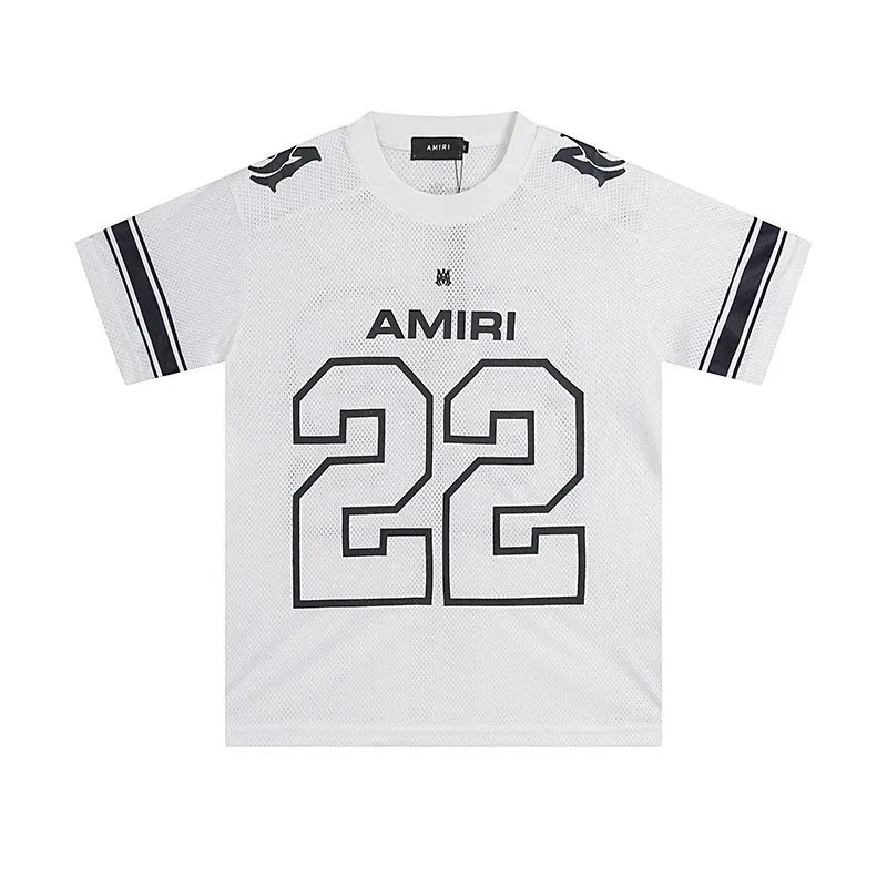 AMIRI 22 jersey and shorts set in white, red, and black. High-performance athletic wear with bold number 22 graphics and branded detailing for a statement look.