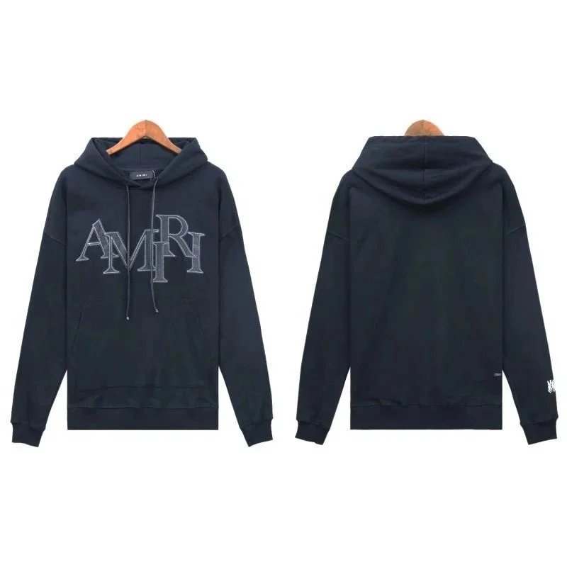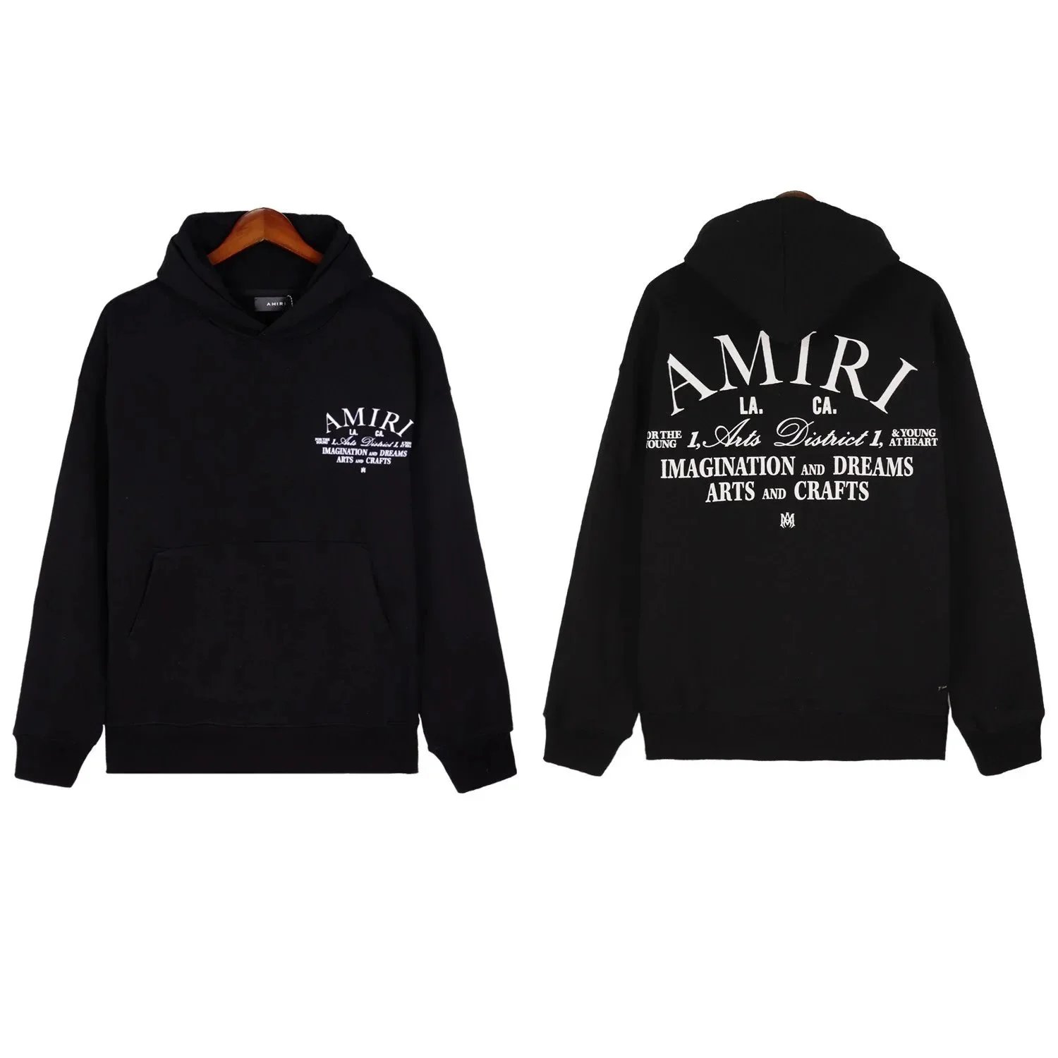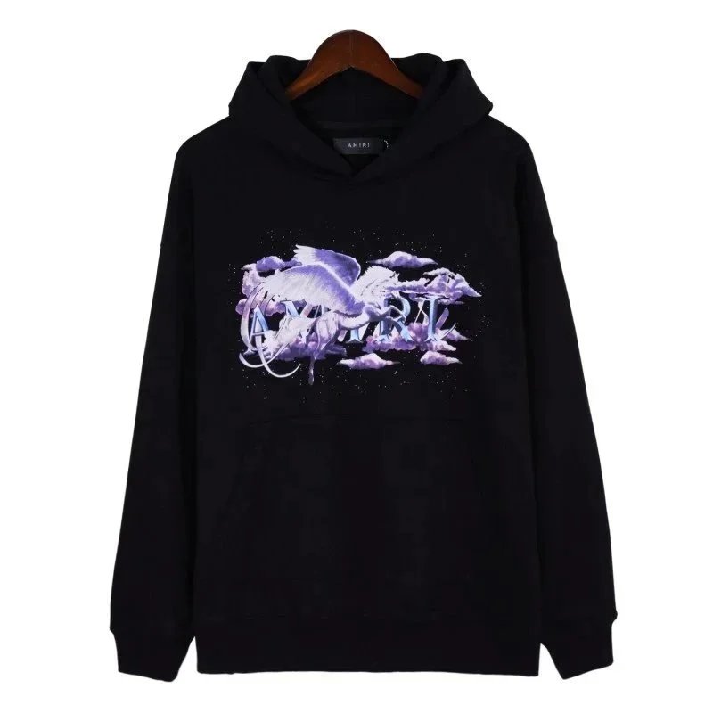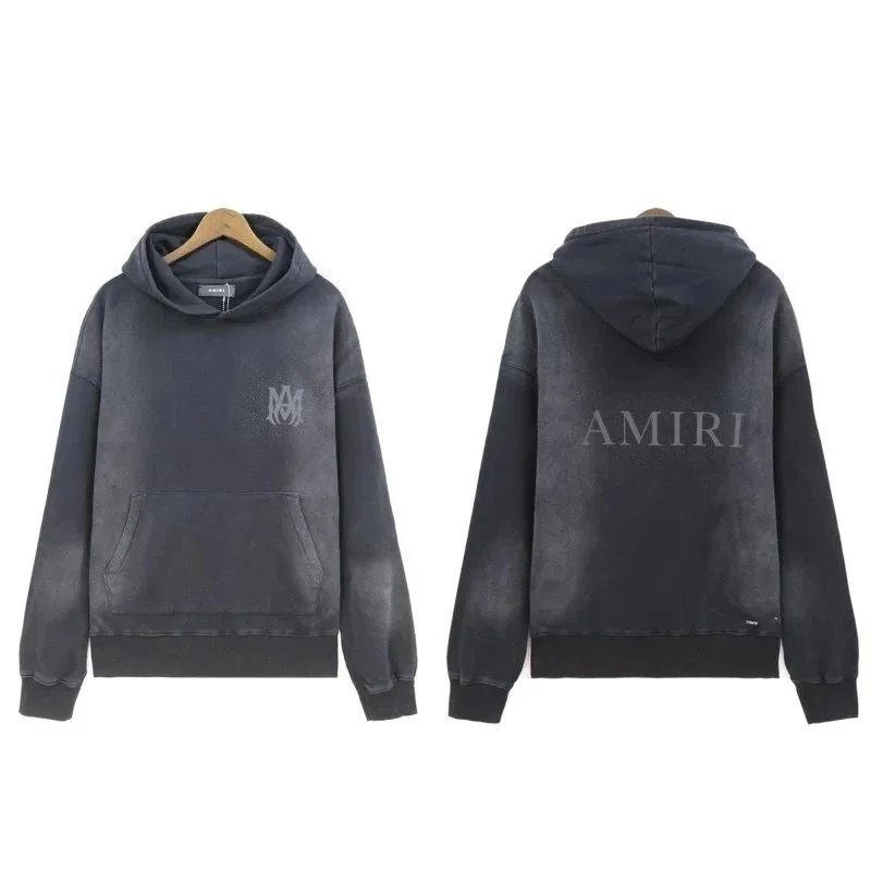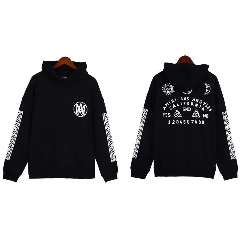 Elevate your streetwear game with this AMIRI black hoodie featuring bold gold paisley sleeves and a signature logo. Perfect for luxury casual style.
