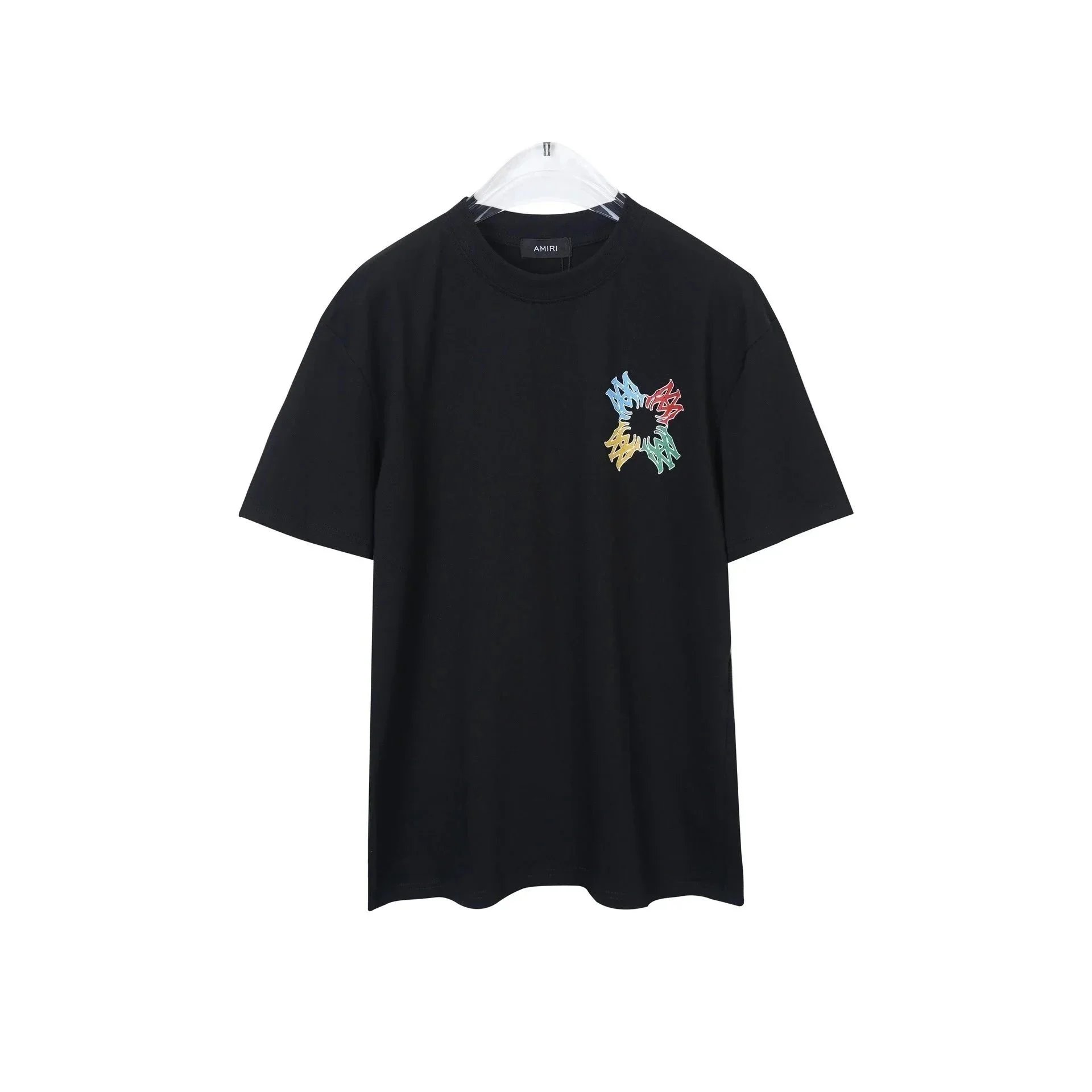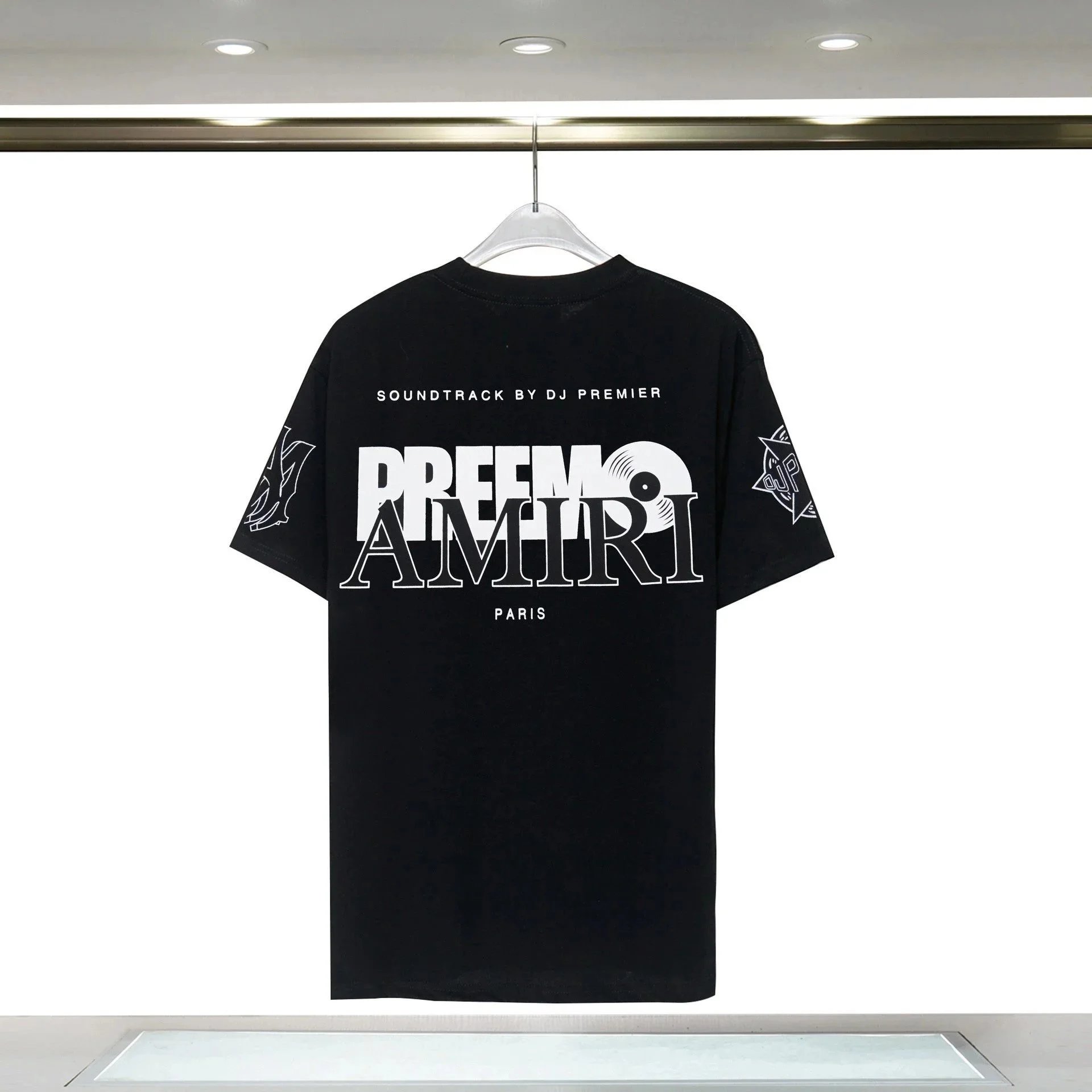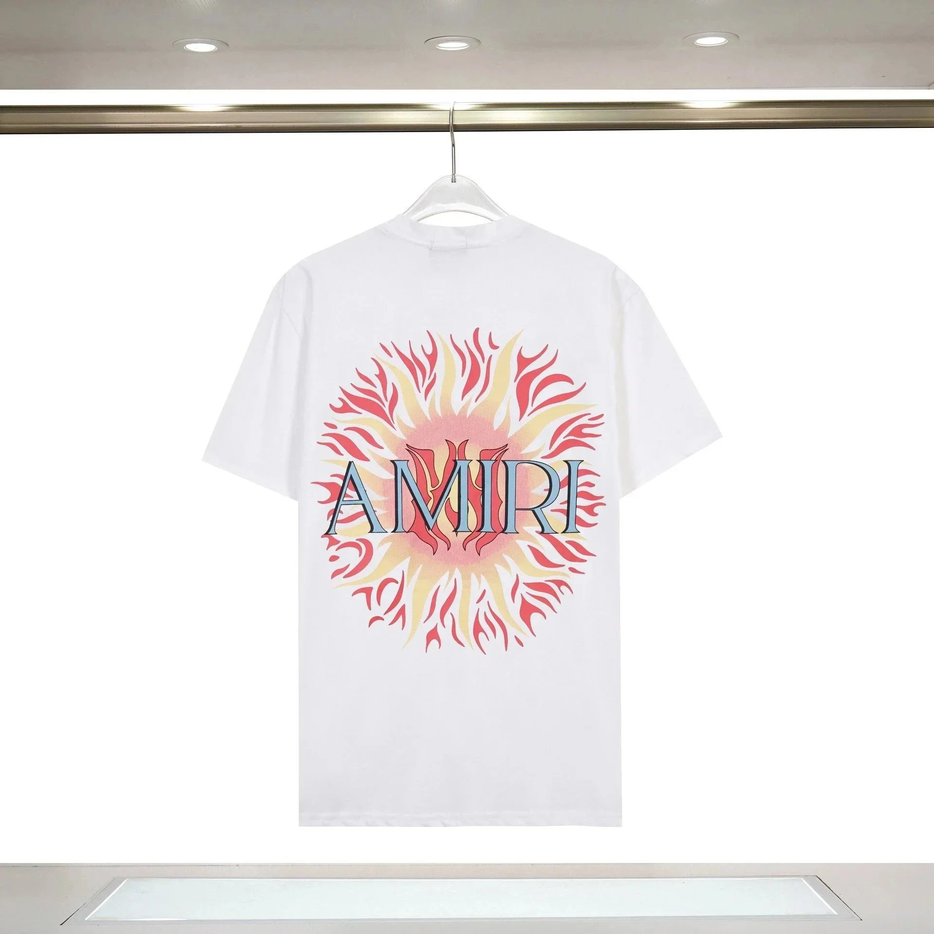 AMIRI brand t-shirts featuring bold chain-decorated logo prints — available in white and black. Designed for urban style with distinctive branding.