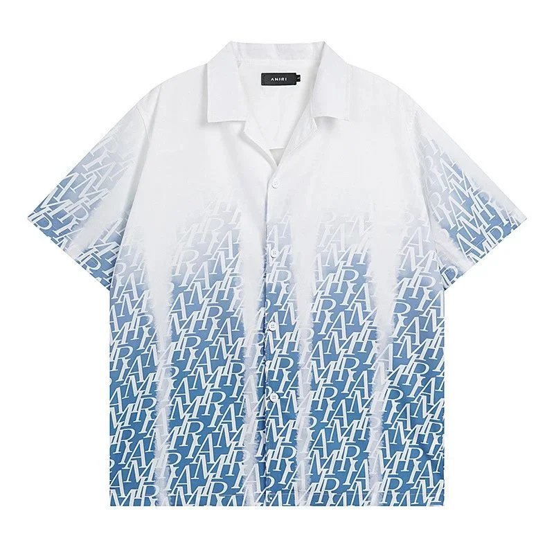 Discover Amiri's premium gradient monogram shirts and matching shorts, featuring bold branding and modern silhouettes for urban style. Ideal for casual outings or statement looks.