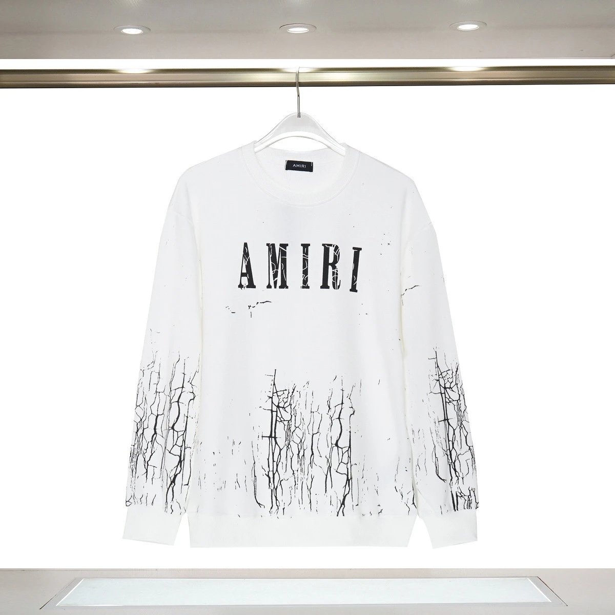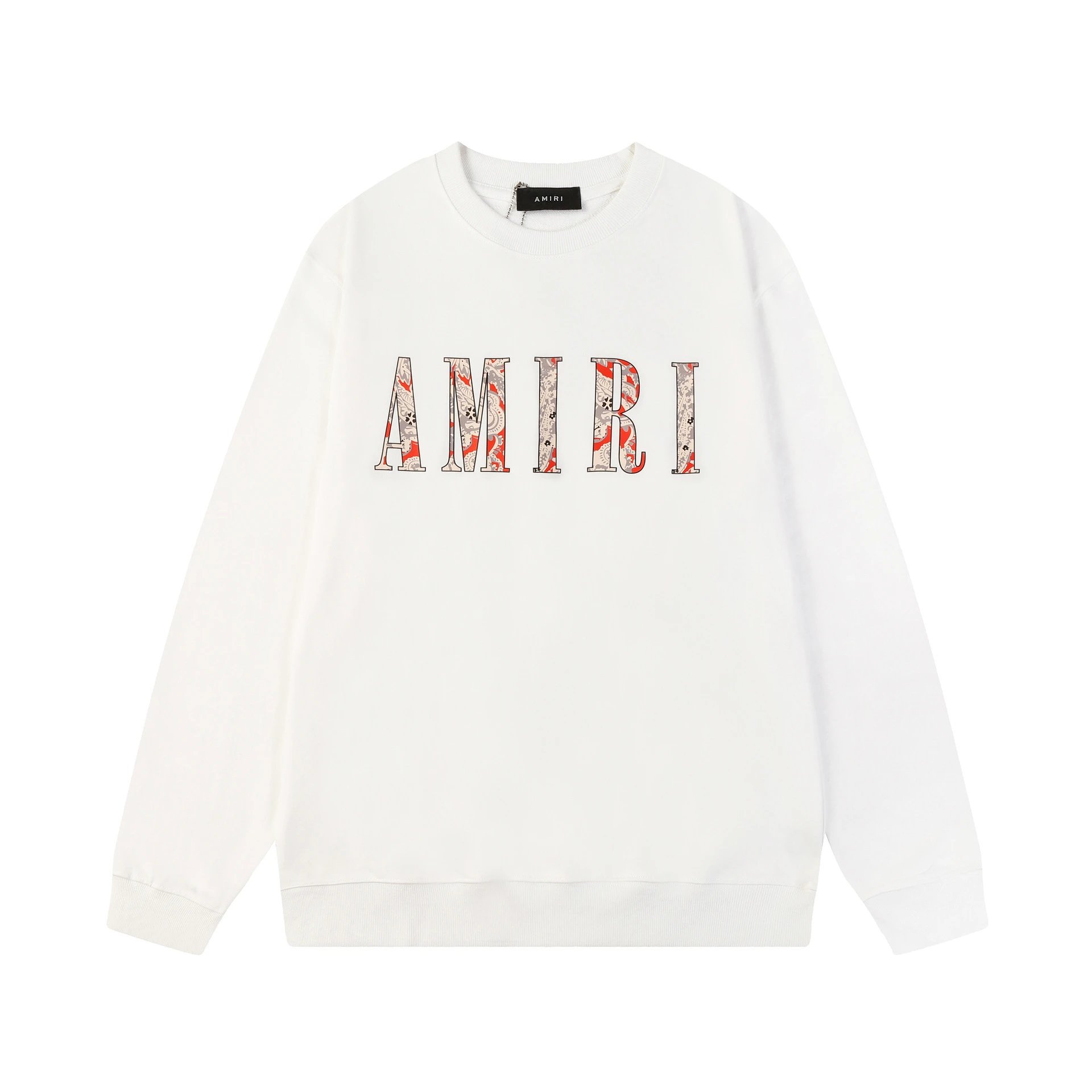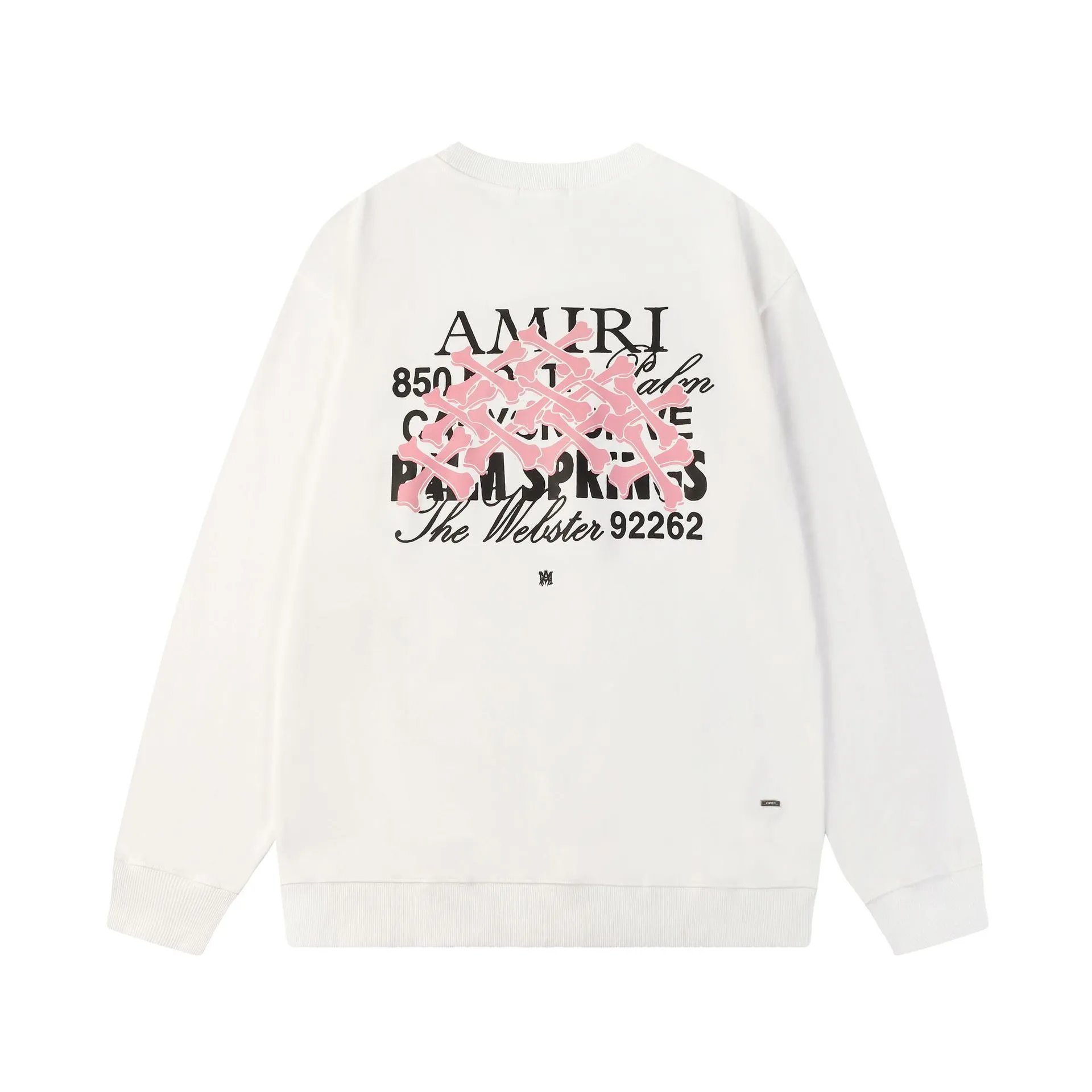 Shop the AMIRI collection of premium graphic sweatshirts featuring bold prints and iconic branding in black, cream, and white.
