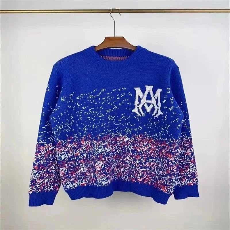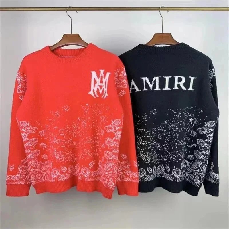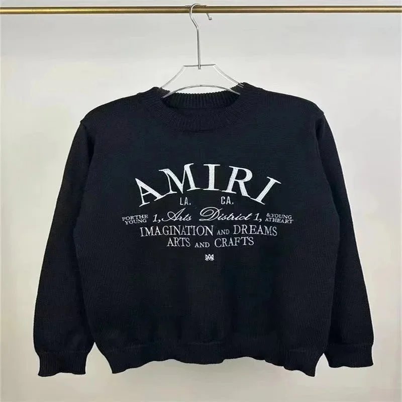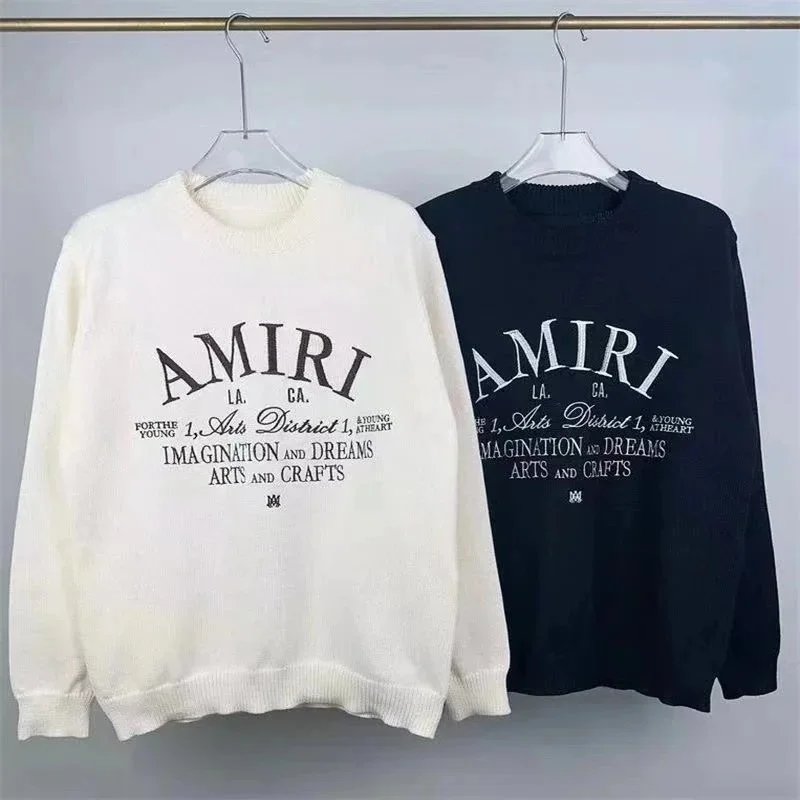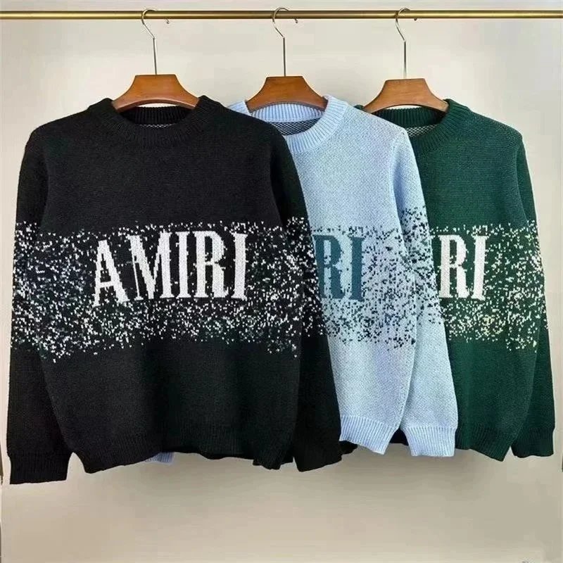 Elevate your wardrobe with authentic AMIRI knit sweaters featuring bold logos, gradient patterns, and premium textures. Perfect for streetwear and high-end casual looks.