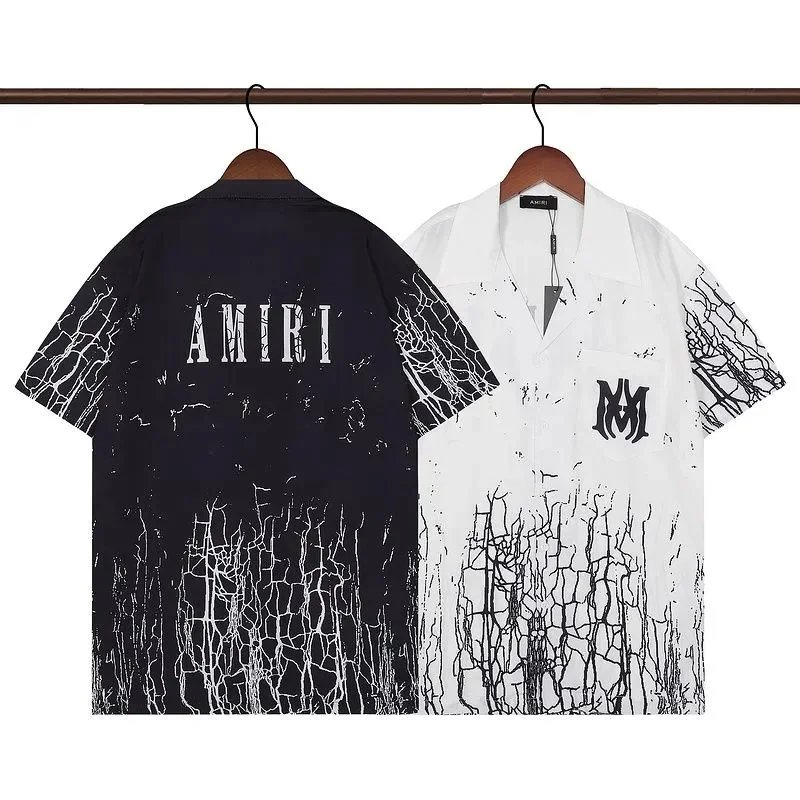 Explore AMIRI's bold collection of short-sleeve button-up shirts featuring unique prints like floral, skull, tie-dye, and bandana patterns for a statement look.