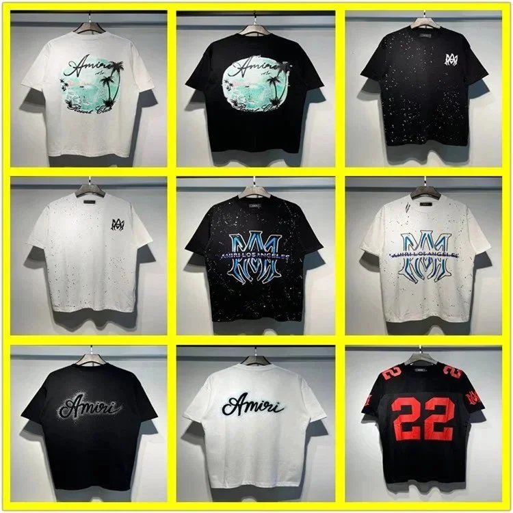 Discover the AMIRI t-shirt collection featuring bold graphic designs, drip prints, and iconic logos in black and white. Perfect for urban style enthusiasts seeking premium streetwear.
