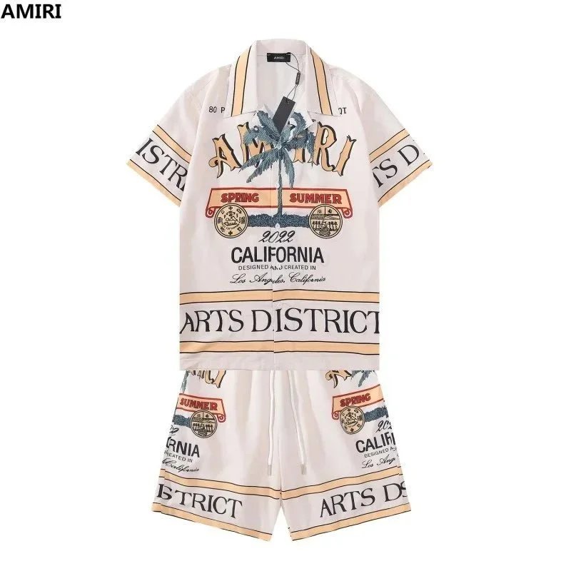 Discover Amiri’s stylish short sets featuring bold wave, bandana, and houndstooth patterns. Designed for comfort and statement-making appeal, perfect for lounging or casual wear.