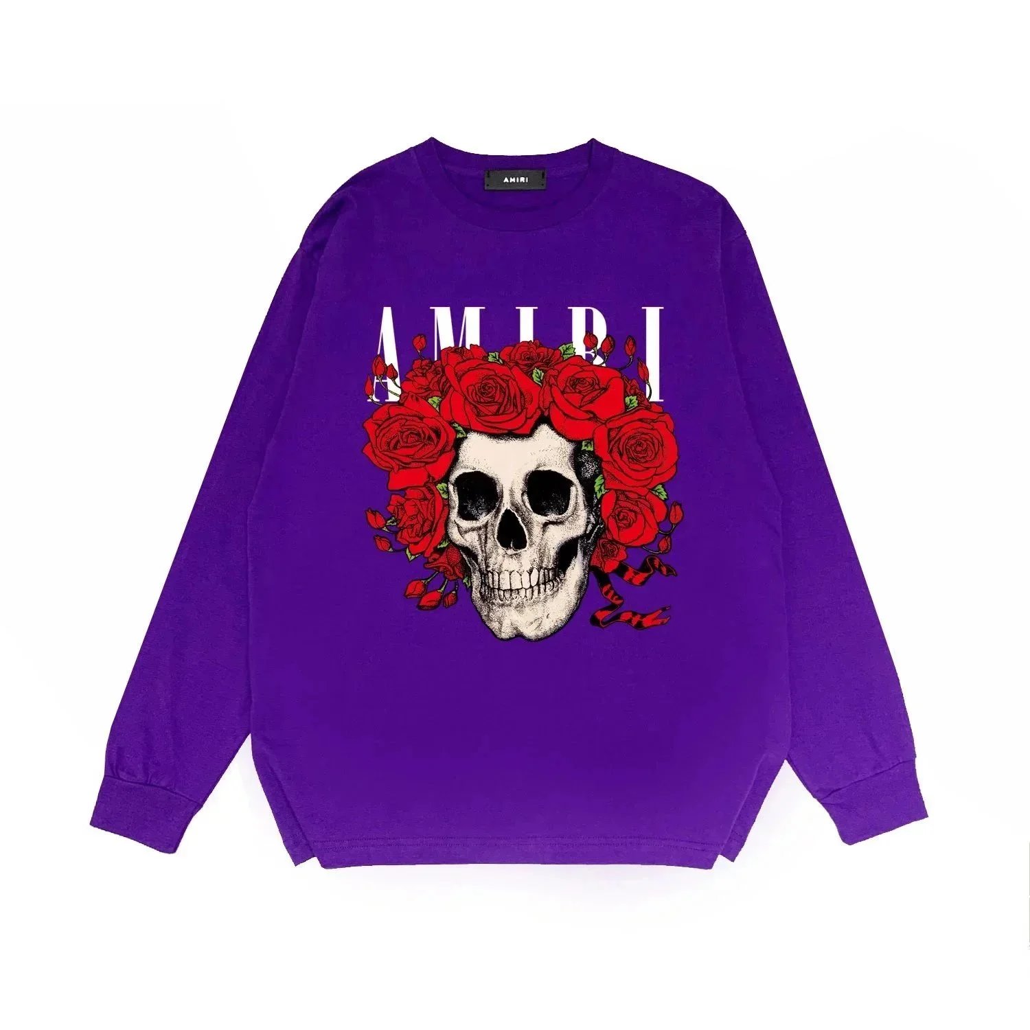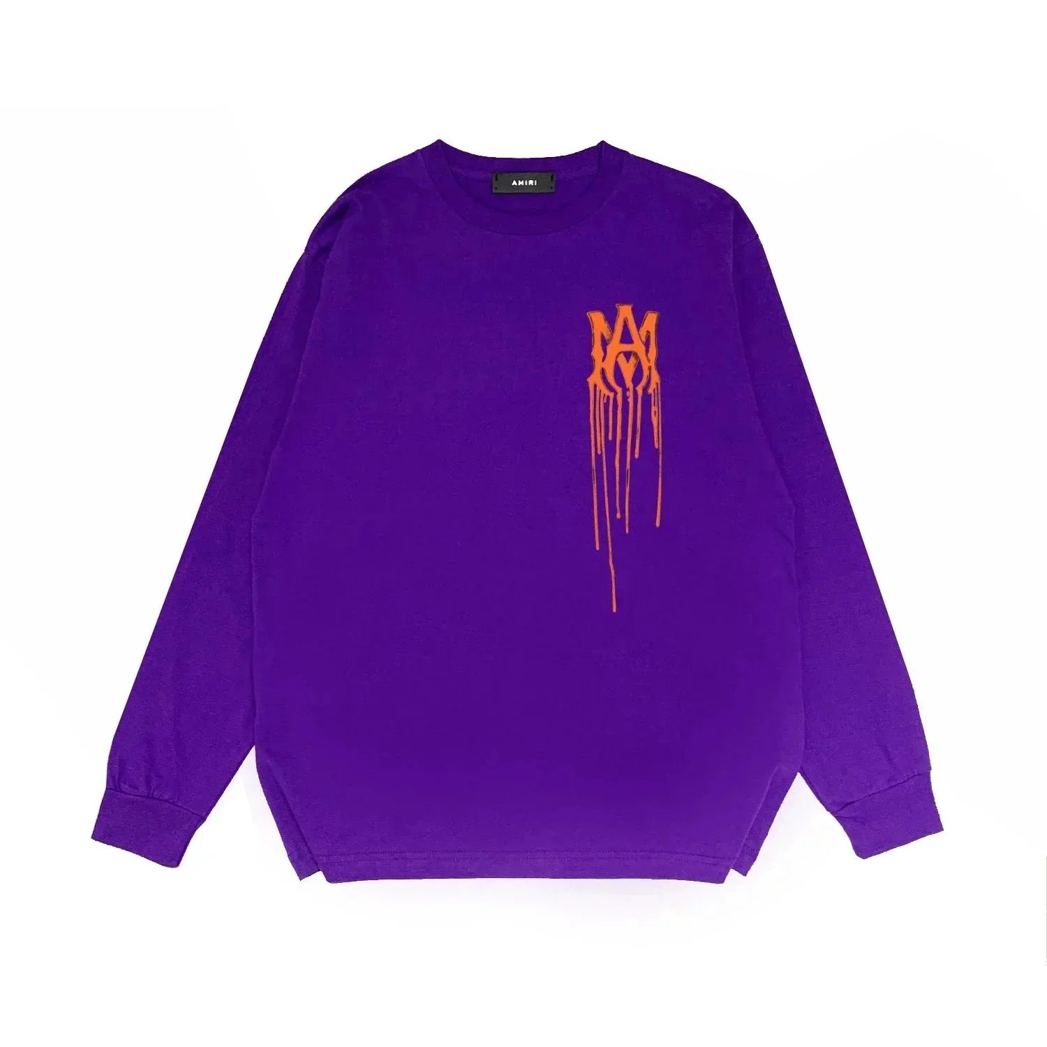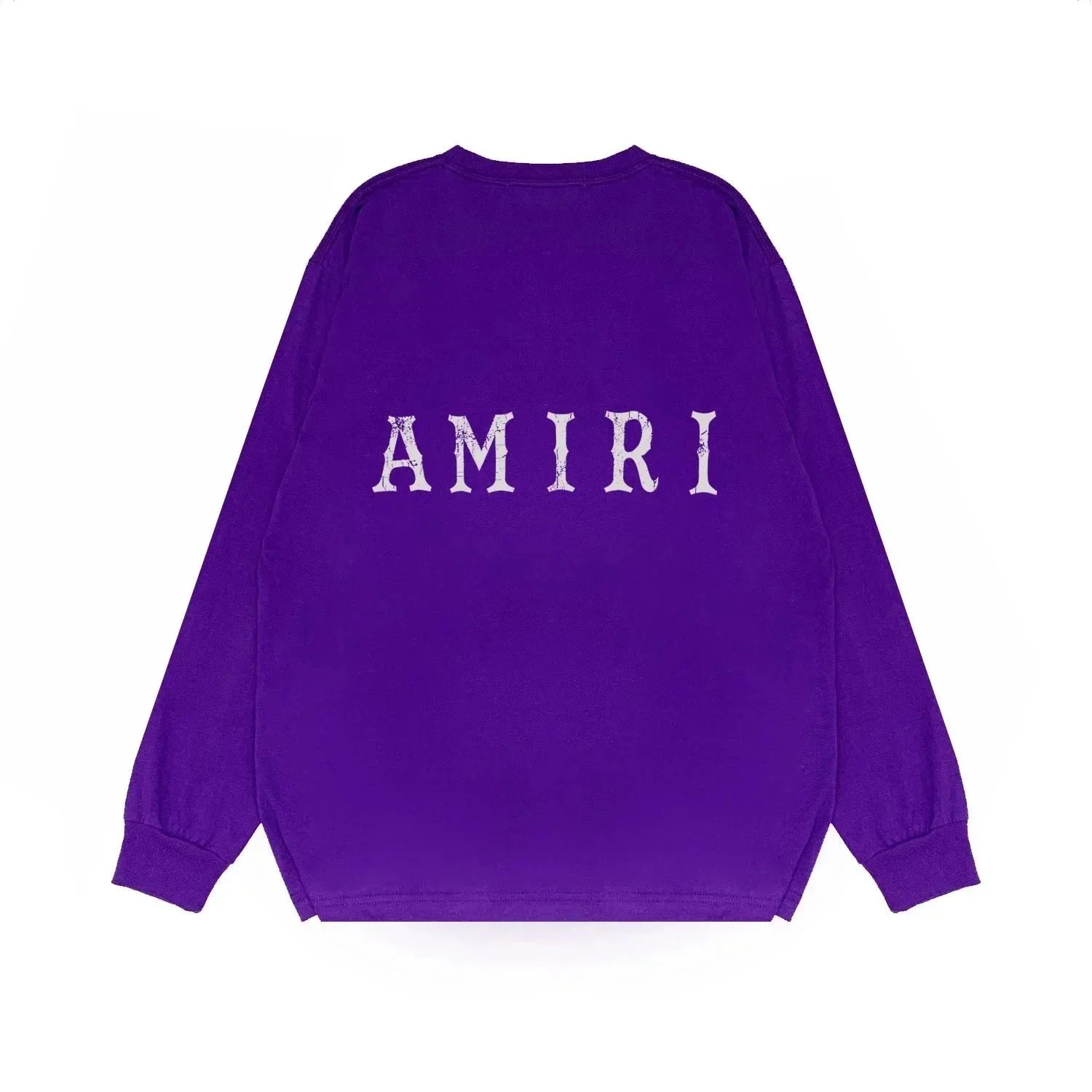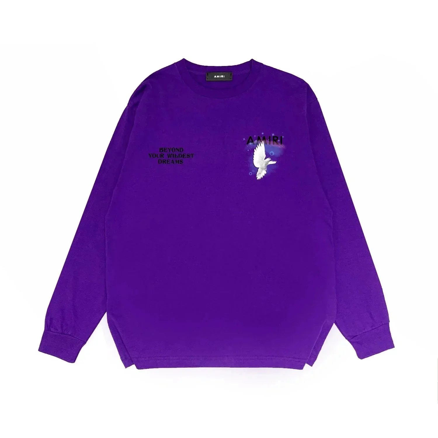 Bold purple Amiri long sleeve t-shirt featuring a vintage Zig-Zag graphic and premium detailing. Perfect for statement streetwear looks.