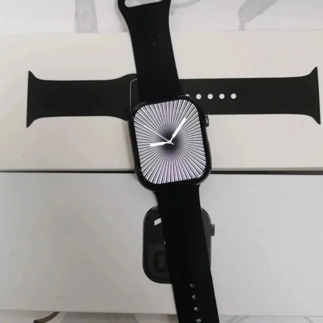 The Apple Watch Series 9 with a sleek black sport band offers advanced health tracking, seamless connectivity, and a modern design for everyday use.