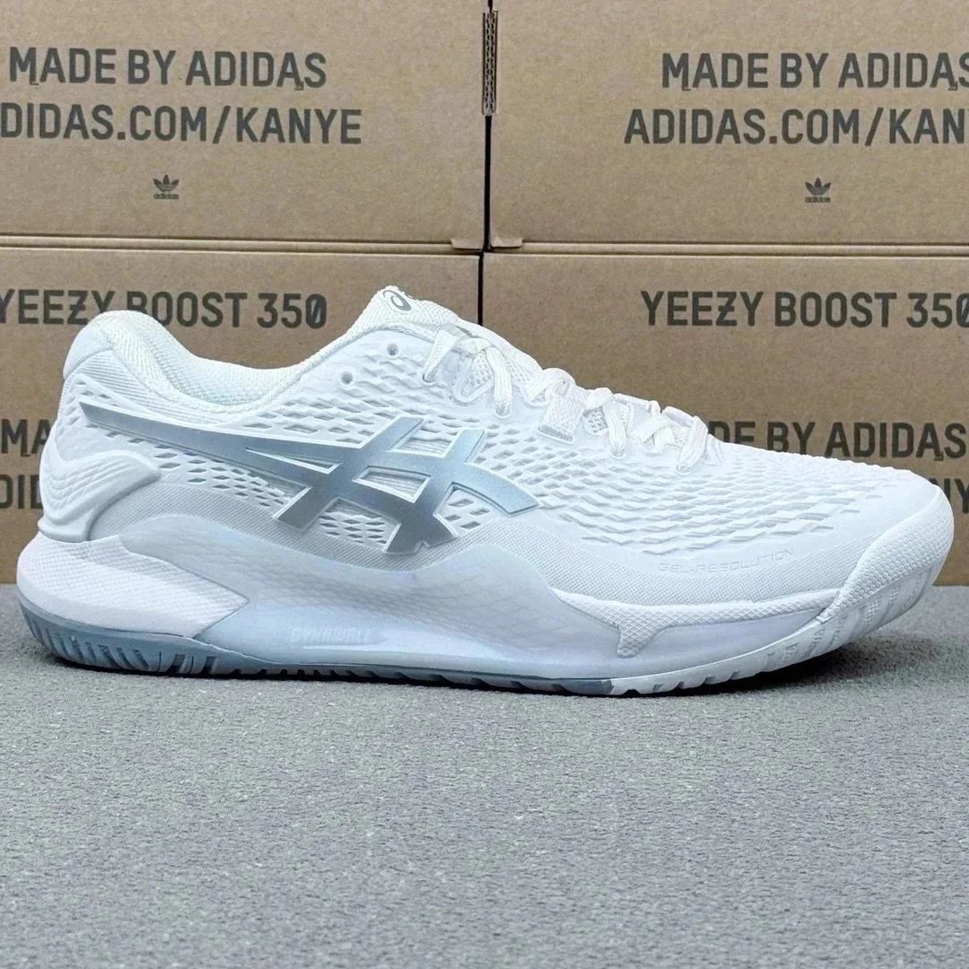 Vibrant neon green and blue Asics Gel-Resolution tennis shoe designed for high-performance court play with superior cushioning and support.
