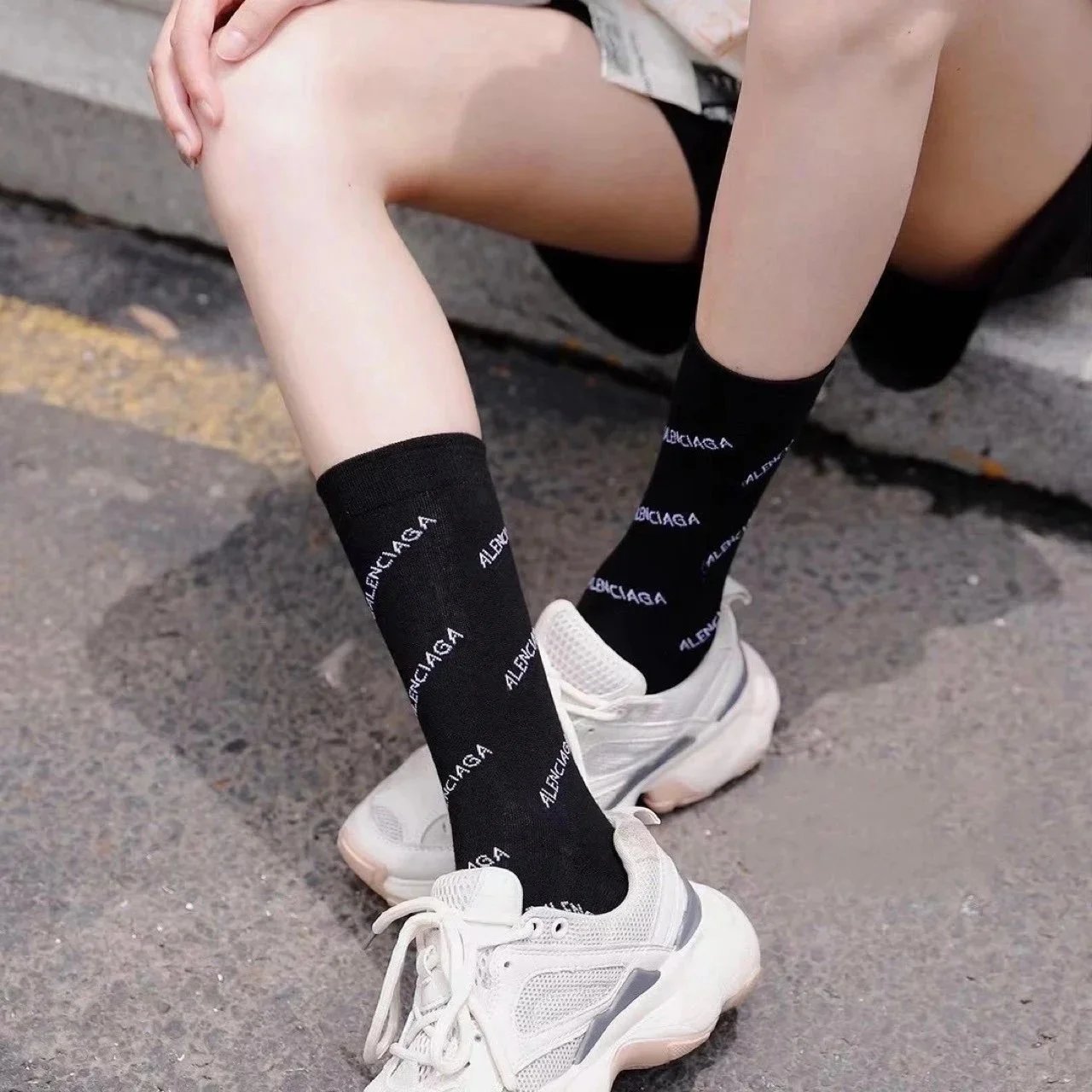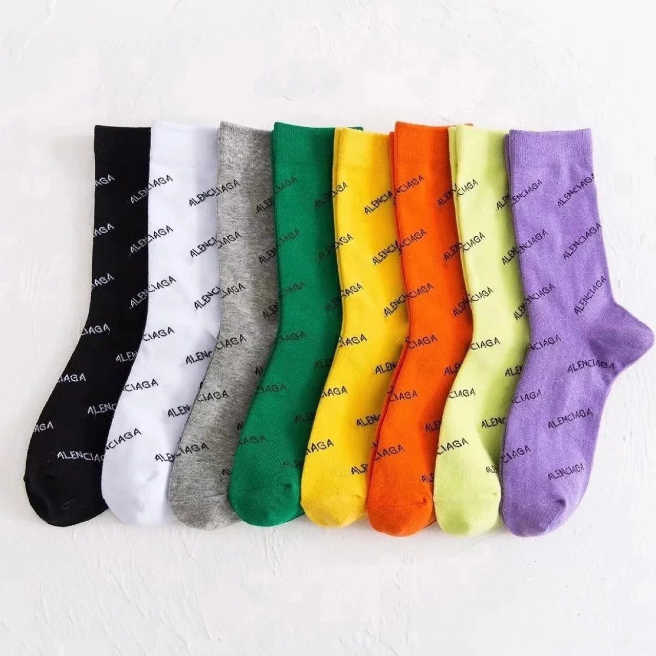 Discover the vibrant Balencia logo socks collection featuring bold colors and repeated branding. Perfect for adding a stylish touch to any outfit.