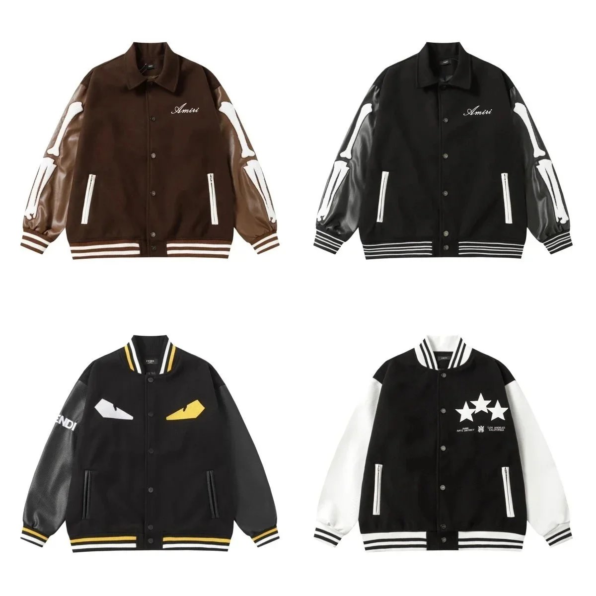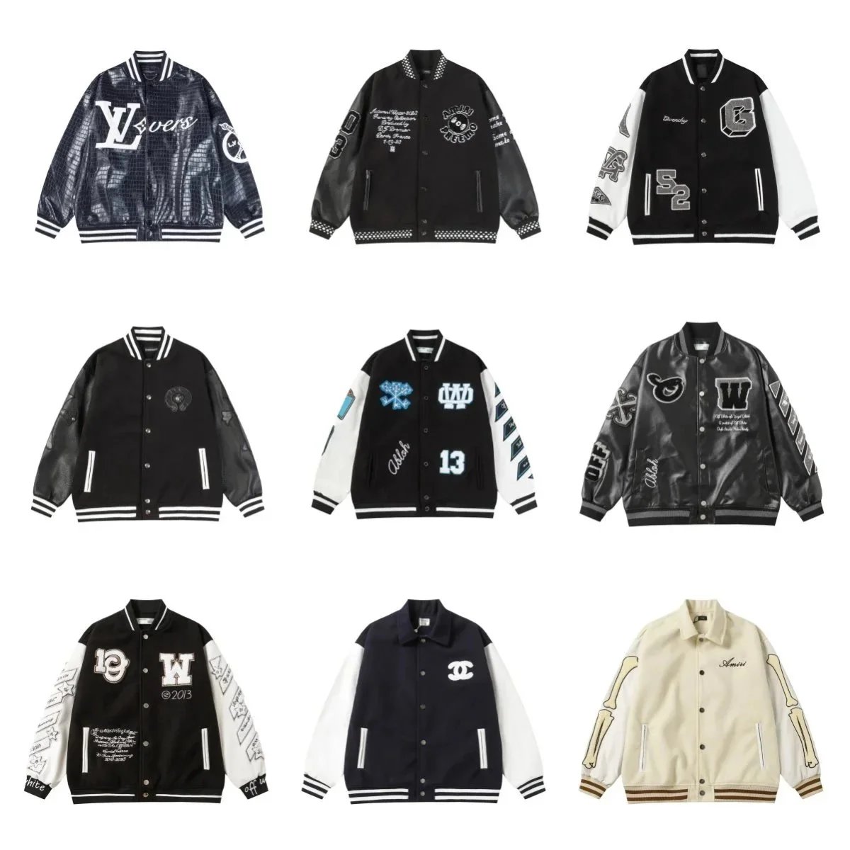 Premium Balenciaga varsity jacket featuring a bold red stripe and brand logo. Crafted with leather sleeves and a classic collegiate design for urban style.