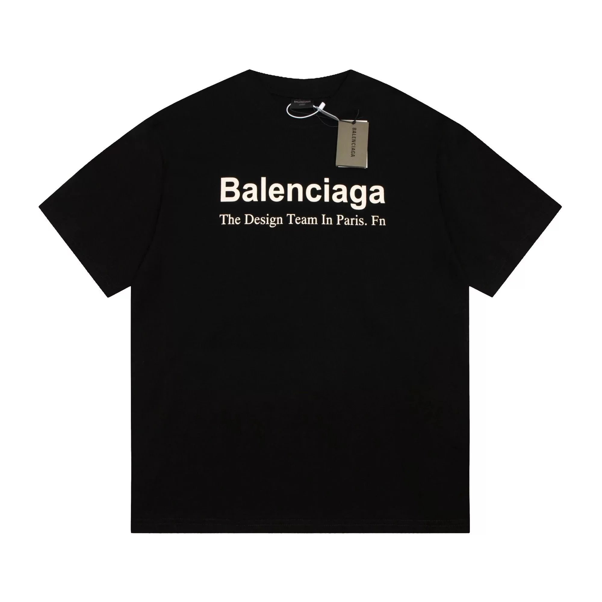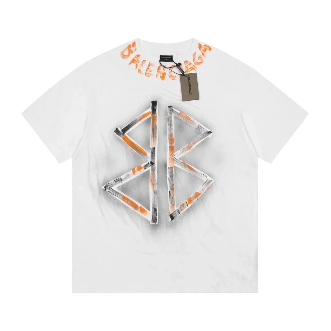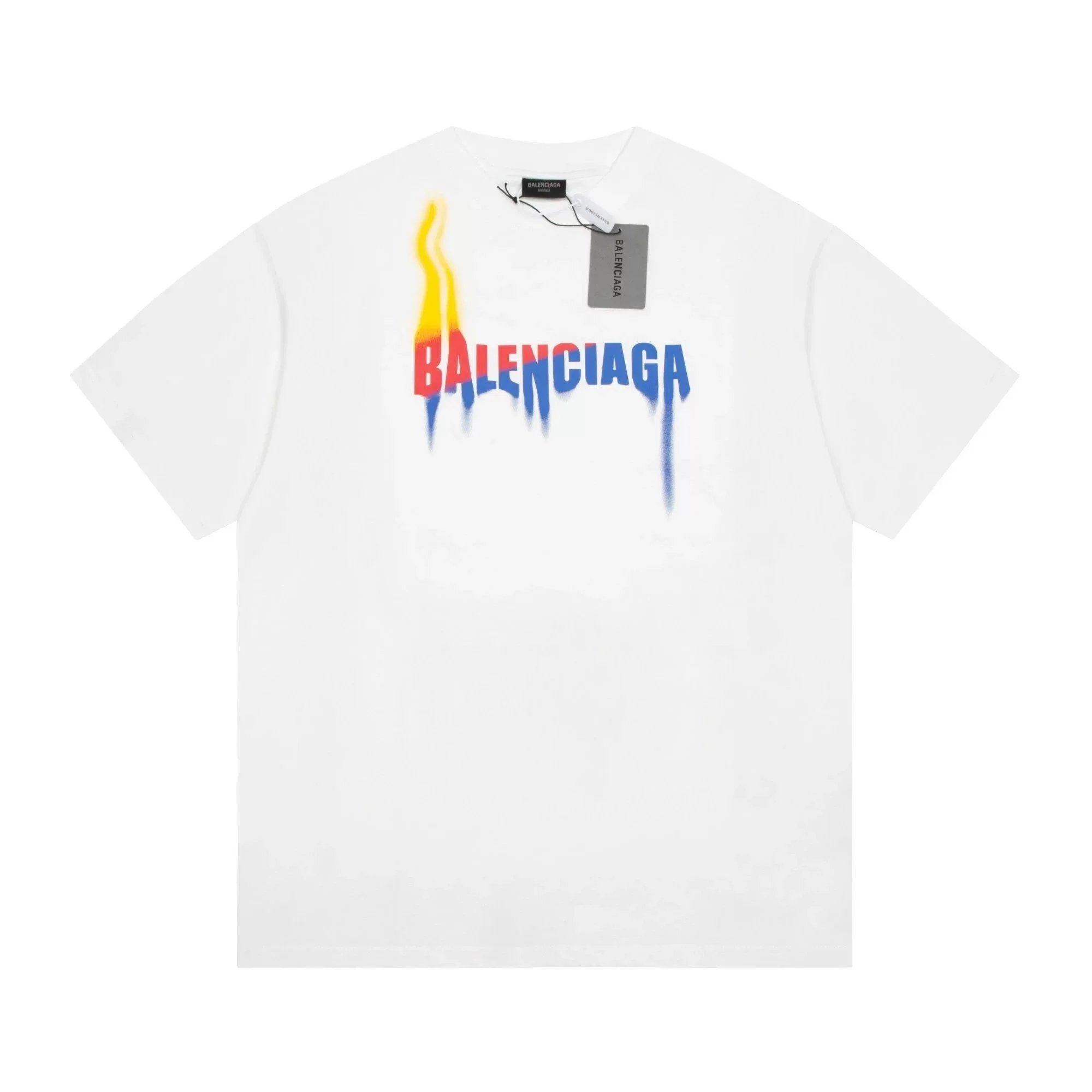 Black Balenciaga t-shirt featuring a bold white logo with red and green wave accents. Designed for urban style enthusiasts seeking high-end streetwear.