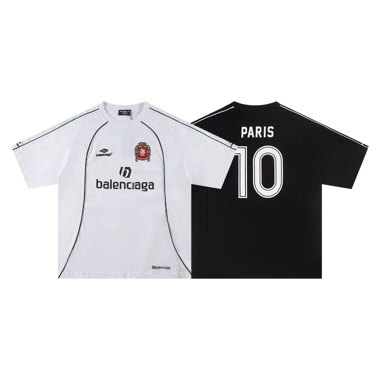 Balenciaga Paris 10 jersey featuring dual-color front and back designs with bold branding and iconic number 10. Combines high fashion with sportswear aesthetics for a statement look.