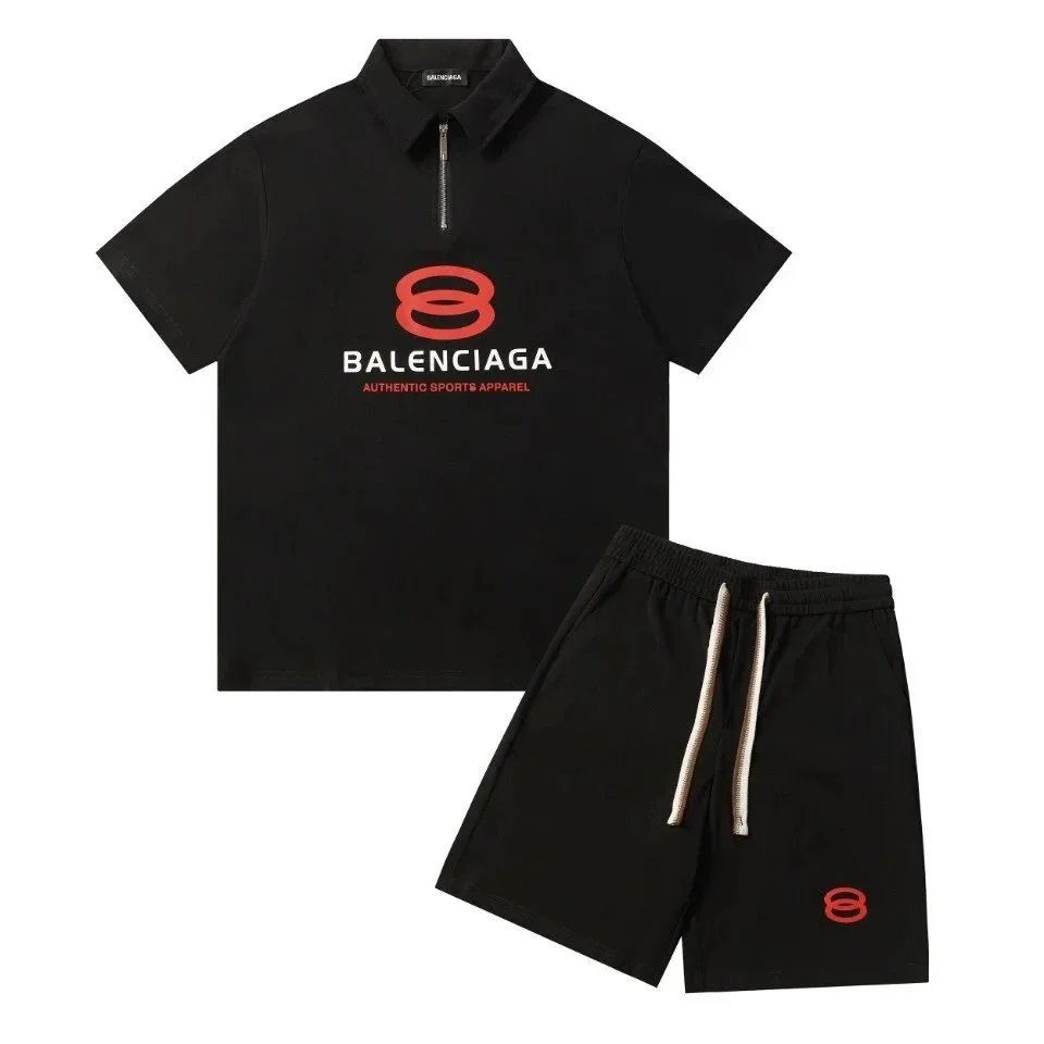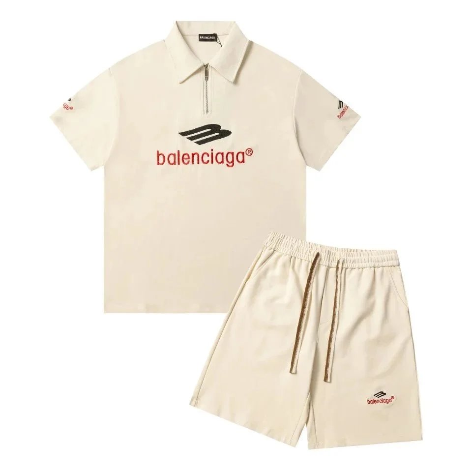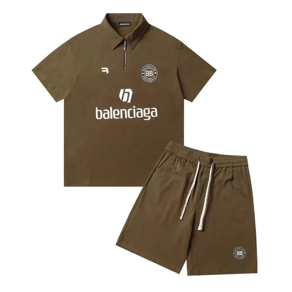 Stylish Balenciaga polo and shorts set in brown featuring bold logo branding. Perfect for a modern, high-fashion look with premium comfort.