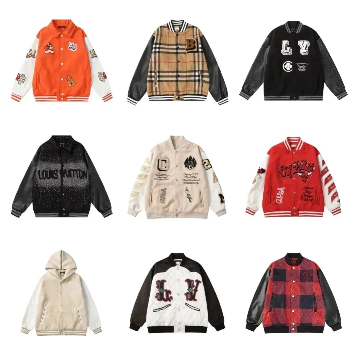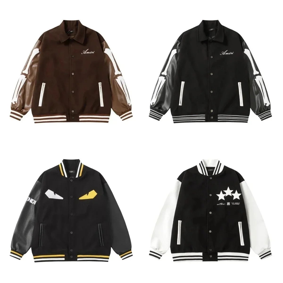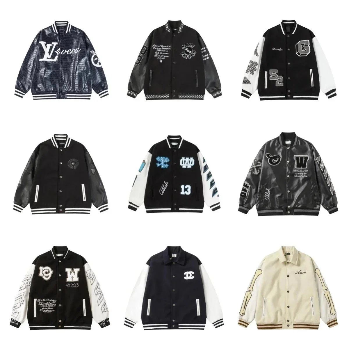 Premium Balenciaga varsity jacket featuring bold branding and a sleek black leather design. Perfect for high-fashion streetwear enthusiasts.