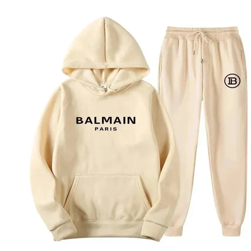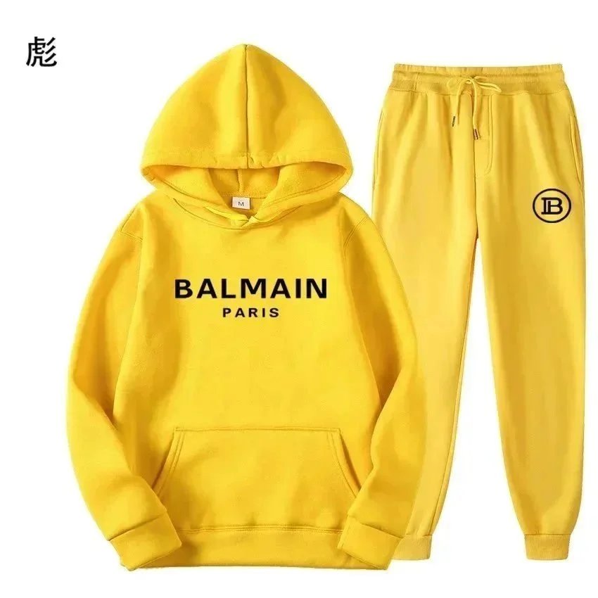 Elevate your casual wardrobe with this authentic BALMAIN Paris hoodie and jogger set. Available in multiple bold colors, perfect for streetwear style.
