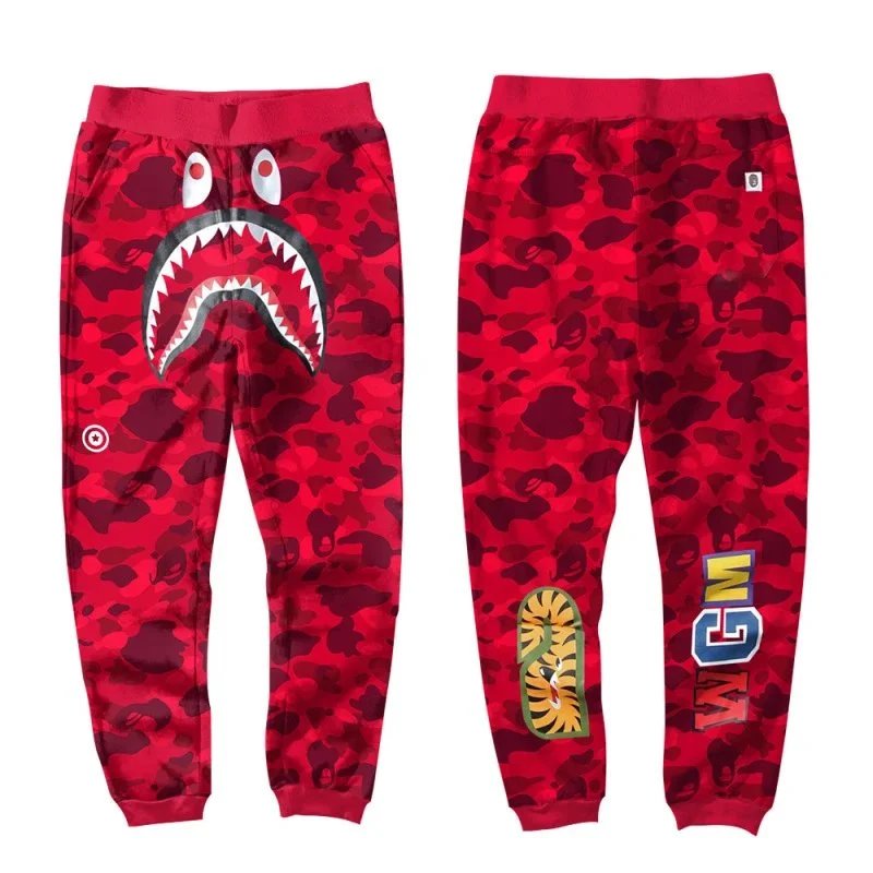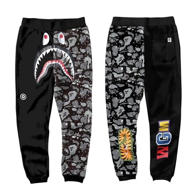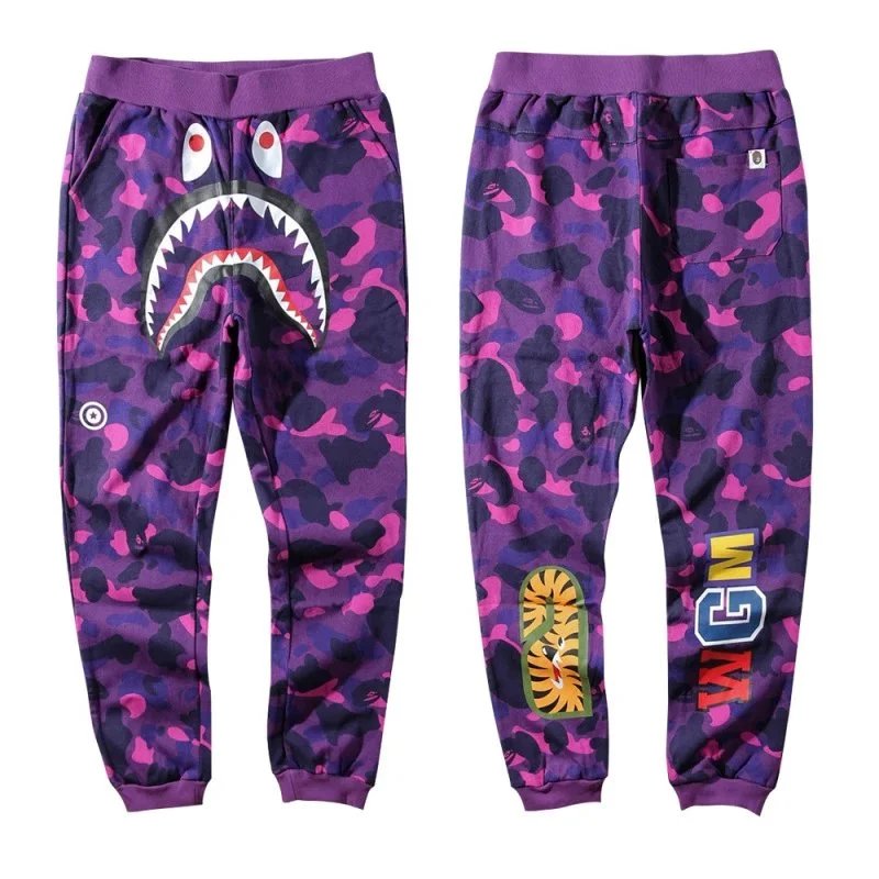 Explore the iconic BAPE Shark Camo Joggers collection featuring bold camouflage patterns and signature shark face graphics. Perfect for streetwear enthusiasts.