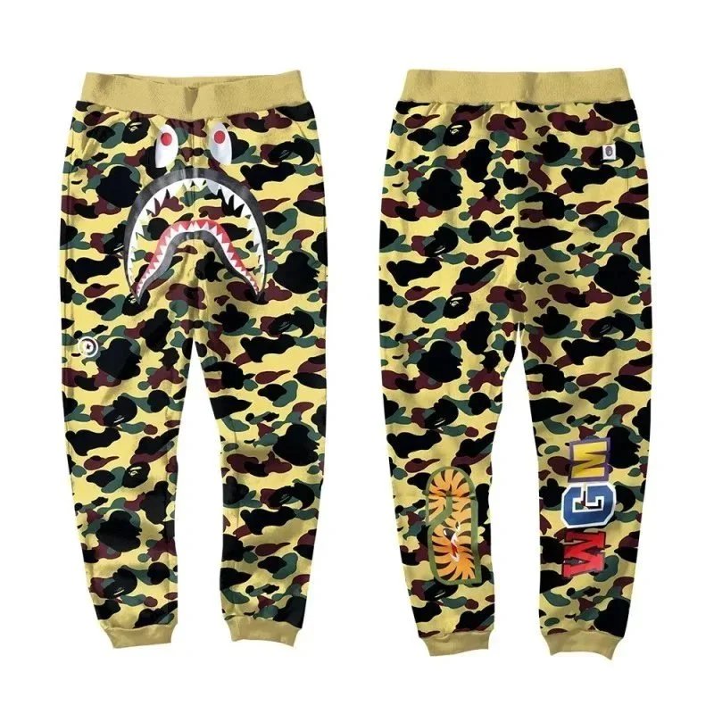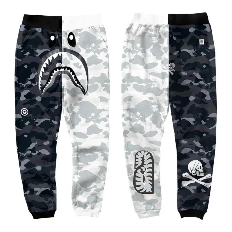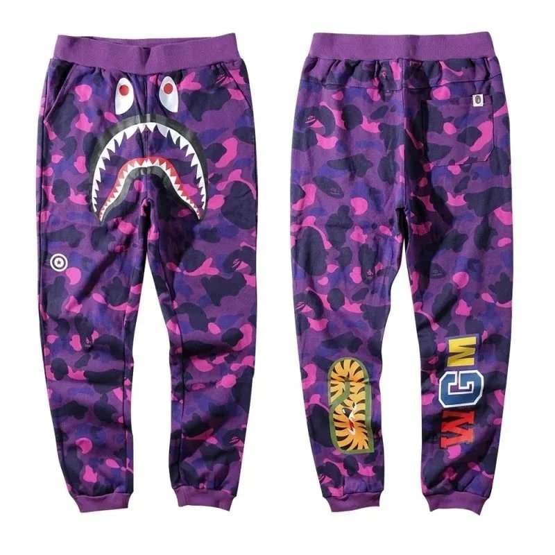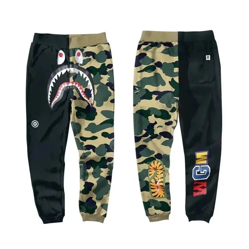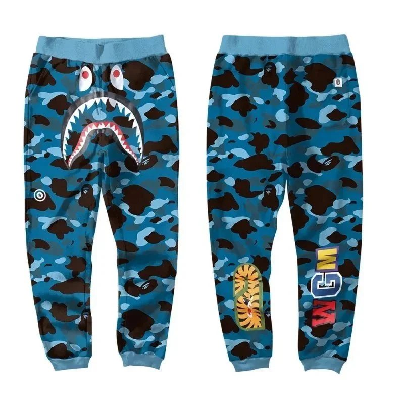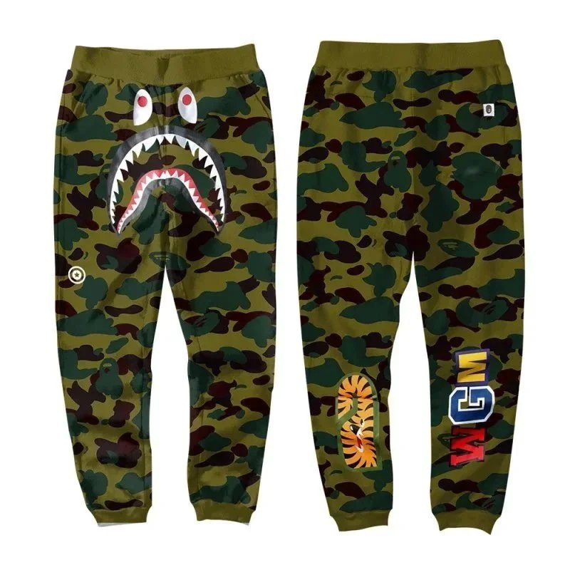 Explore the iconic BAPE shark camo joggers collection featuring bold patterns and signature shark mouth graphics. Perfect for streetwear enthusiasts seeking premium comfort and style.