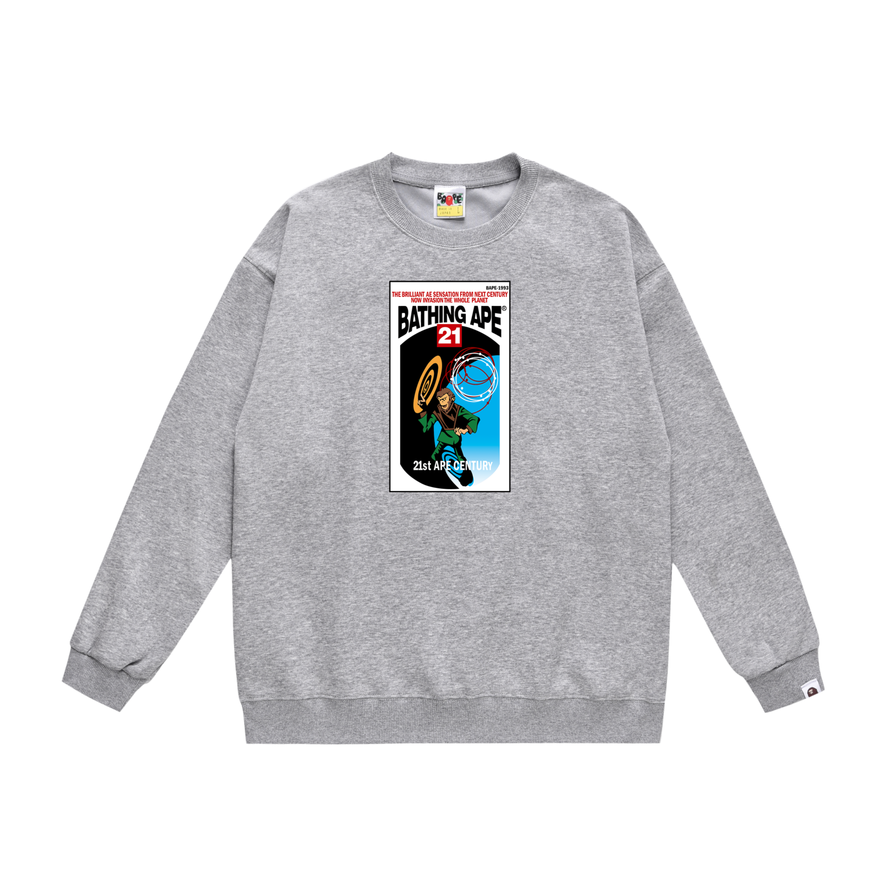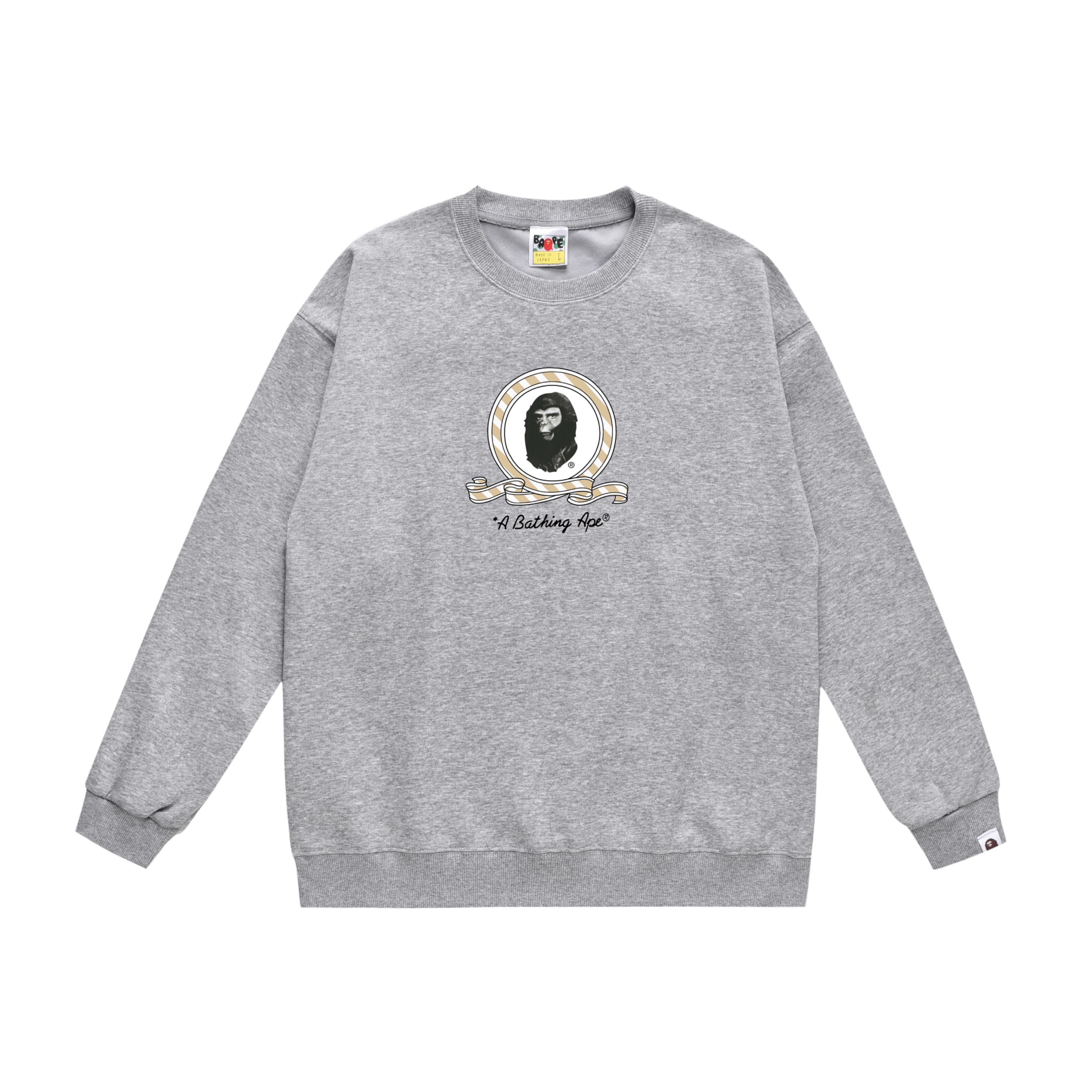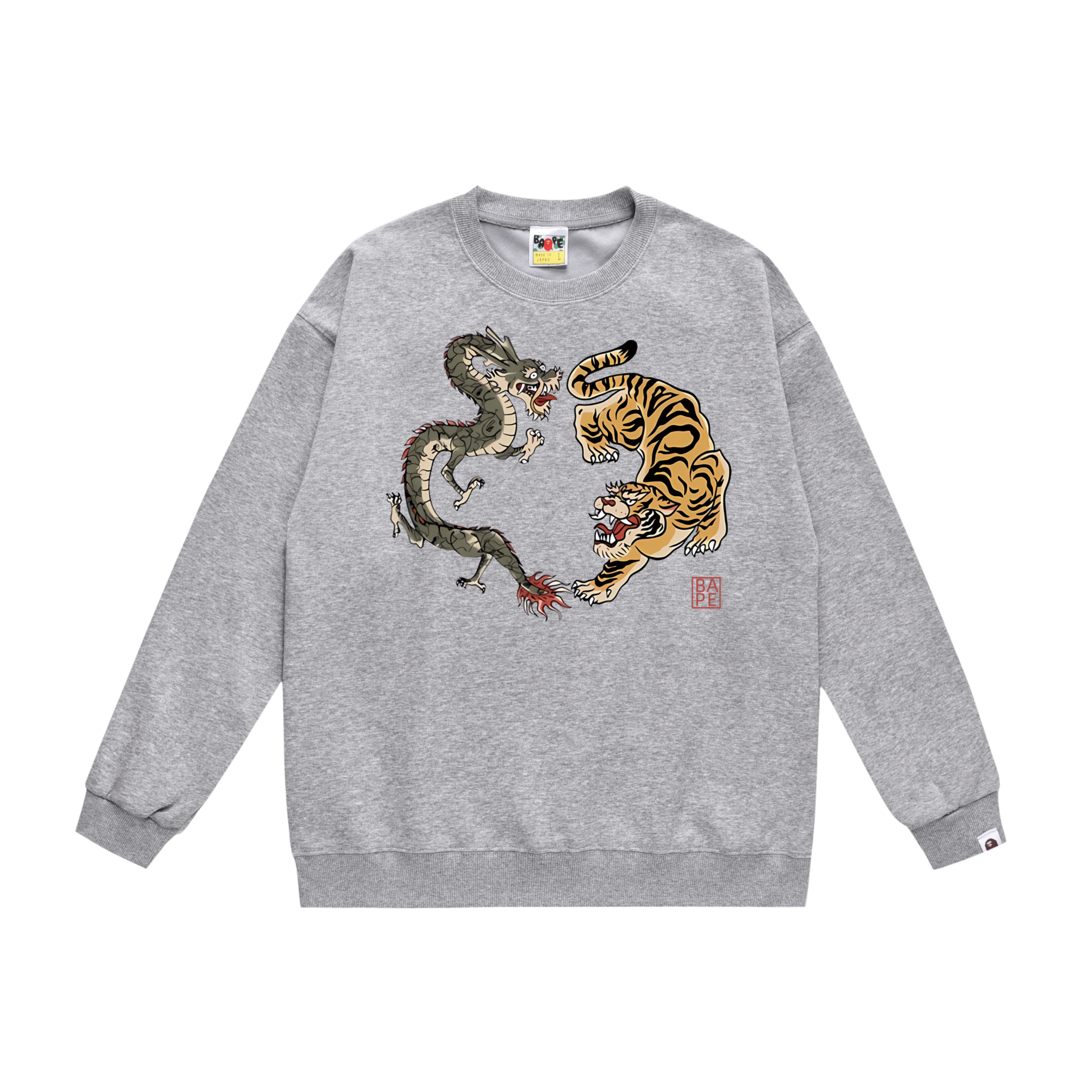 Rock the iconic BAPE x WGM collaboration with this gray sweatshirt featuring a bold shark head graphic split with vibrant patterns and zipper detail.