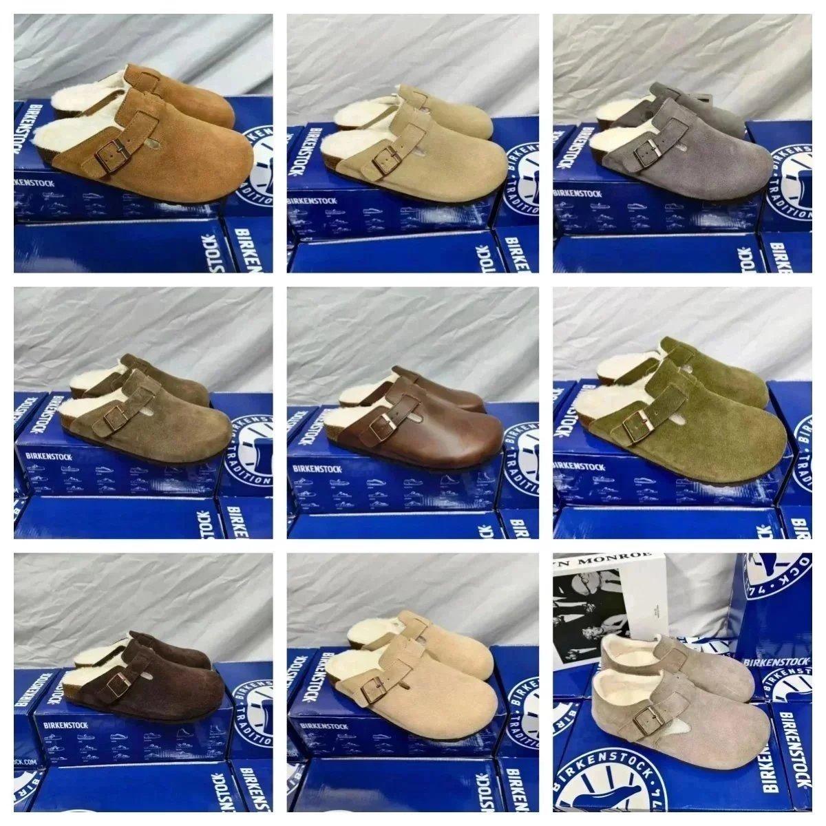 Cozy Birkenstock Boston clogs with plush faux fur lining, available in multiple suede colors for ultimate comfort and style.