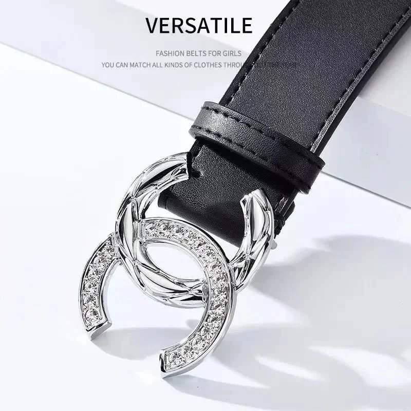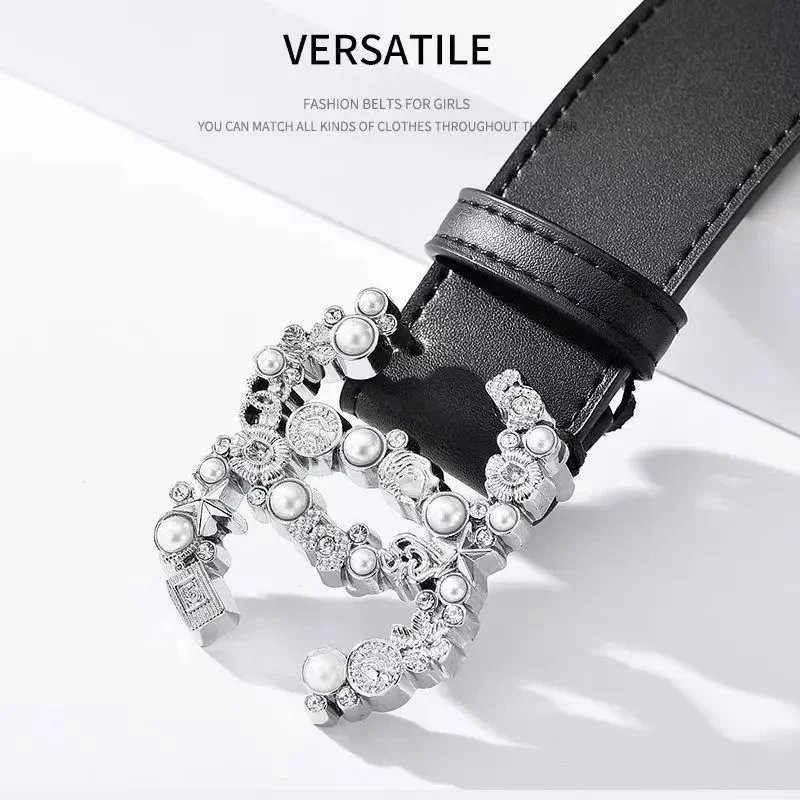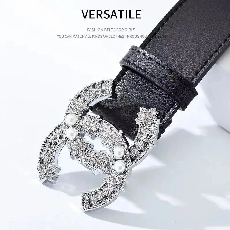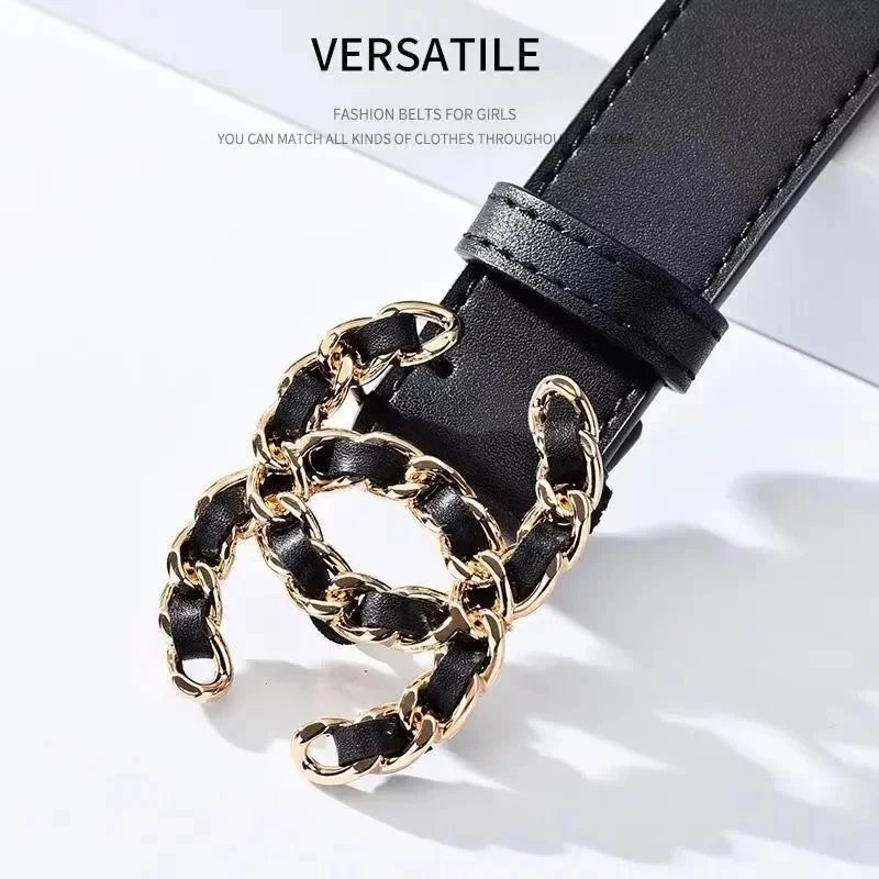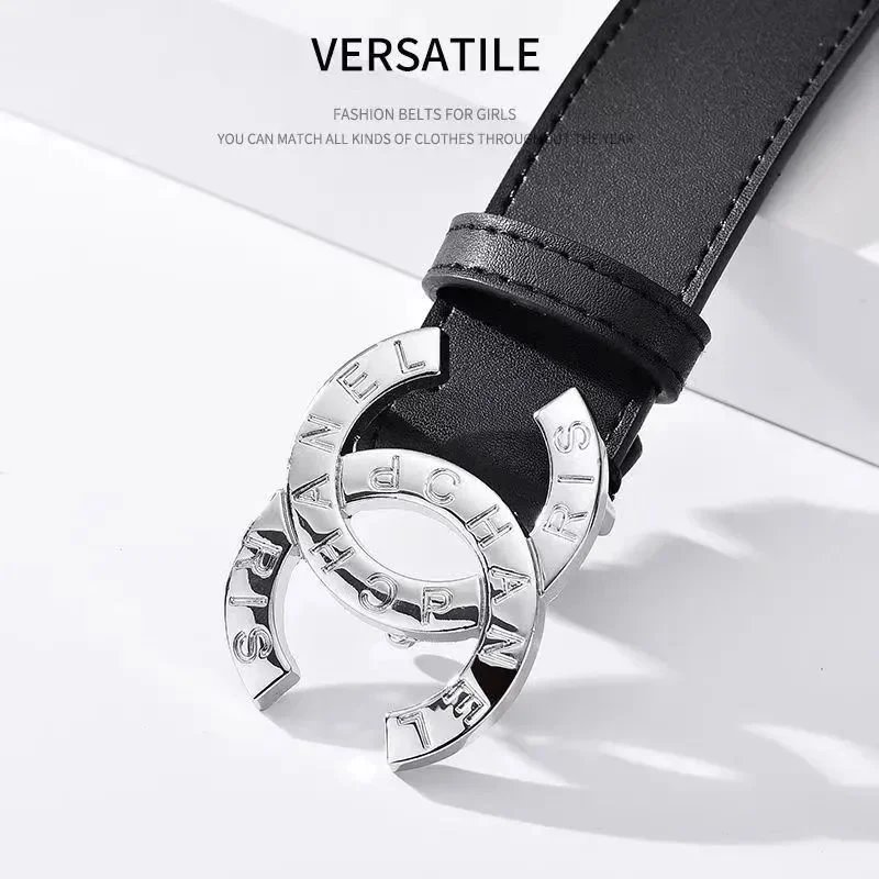 Elegant black leather belt featuring a striking silver chain link buckle for a bold, modern look. Perfect for elevating any outfit with distinctive hardware.