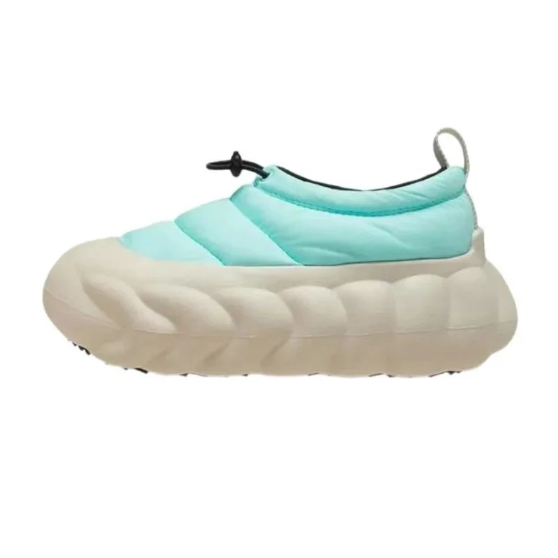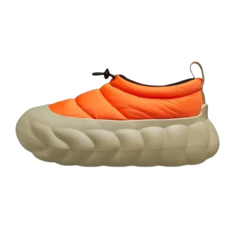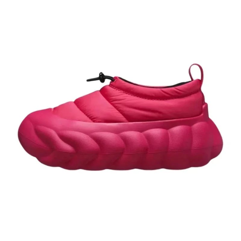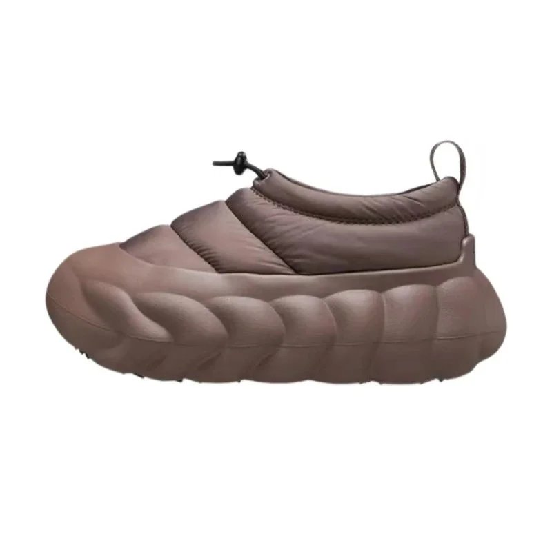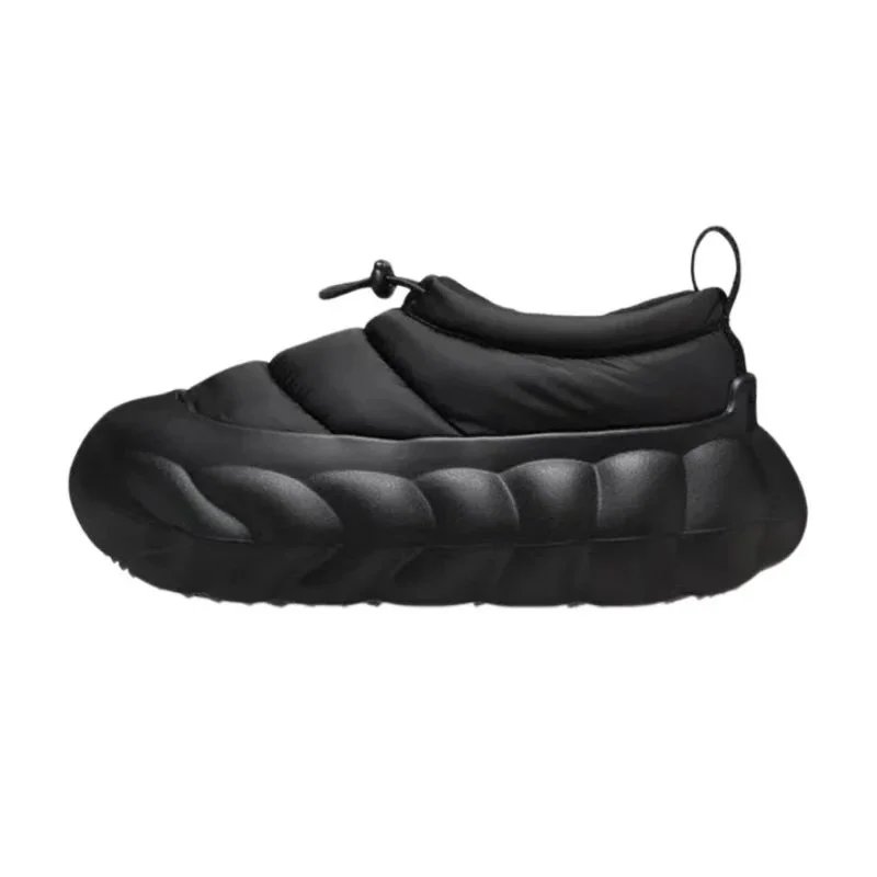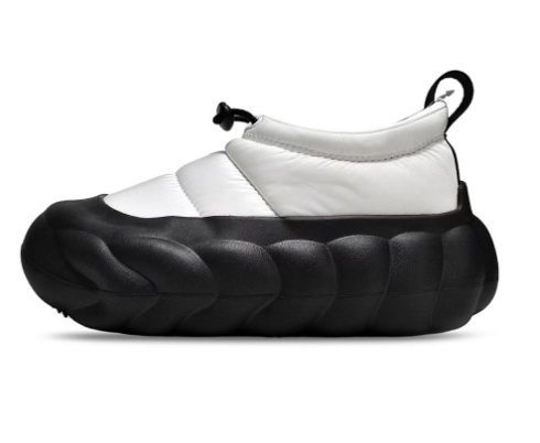 Stylish black puffer jacket paired with chunky platform shoes and knee-high socks for a bold urban look. Ideal for casual outings or street-style photography.