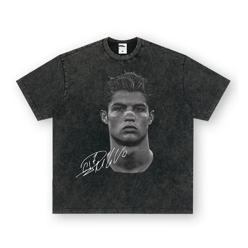 Showcase your fandom with Break Silence’s Cristiano Ronaldo graphic tees and sweatshirts, featuring iconic black-and-white portraits and signature autographs. Available in white, black, and heathered styles for everyday wear.