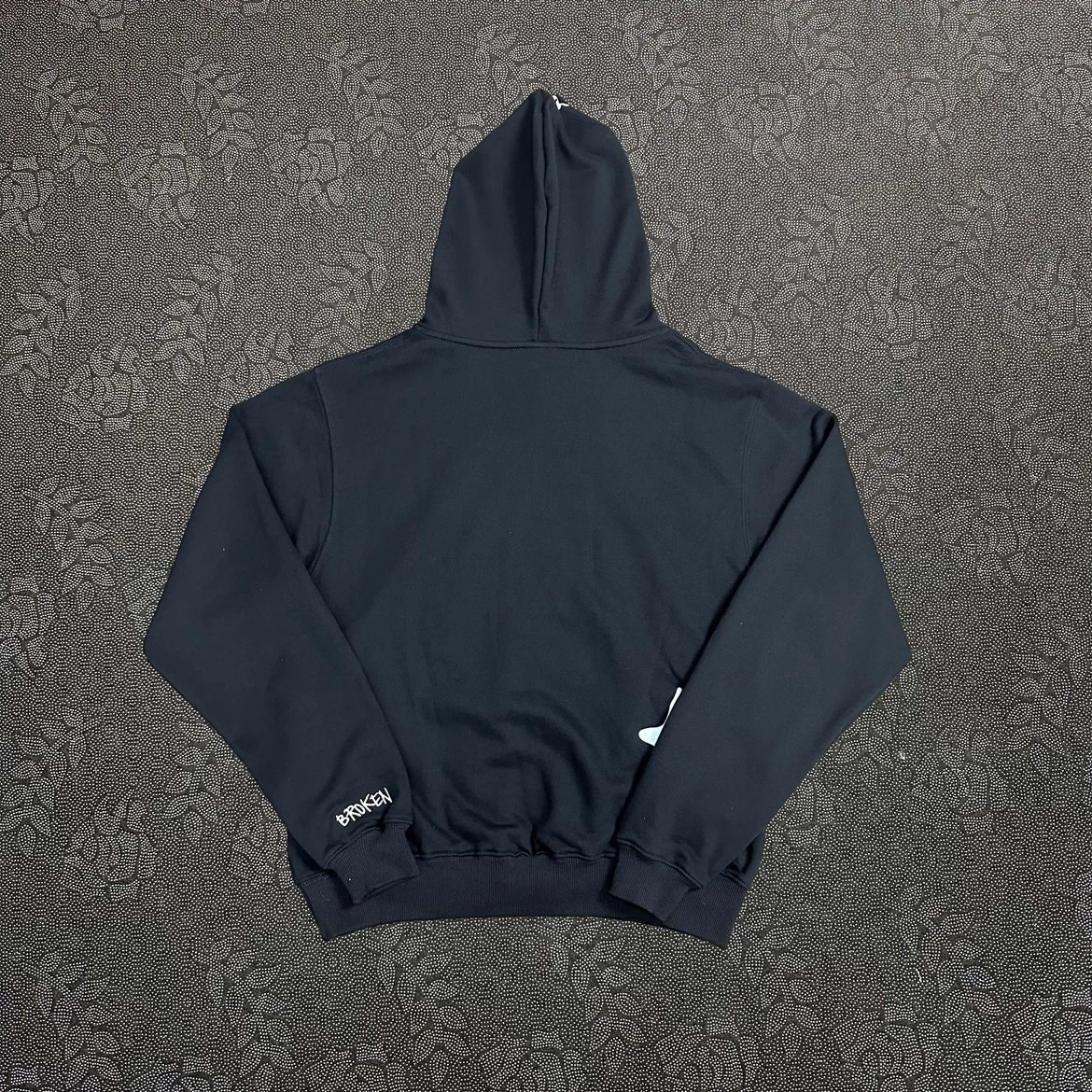 Explore the cosmos with this Broken Planet 'Into The Abyss' hoodie featuring a bold planetary graphic and reflective stars. Perfect for space lovers and streetwear fans.