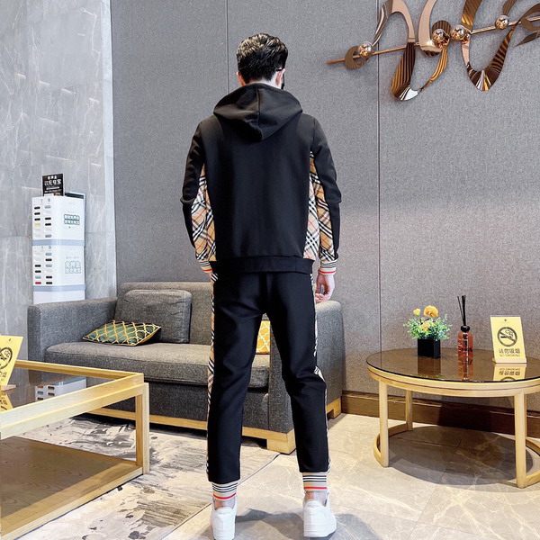 Elevate your casual wardrobe with this authentic Burberry black hoodie and jogger set, featuring the signature equestrian knight logo and classic check-lined hood.