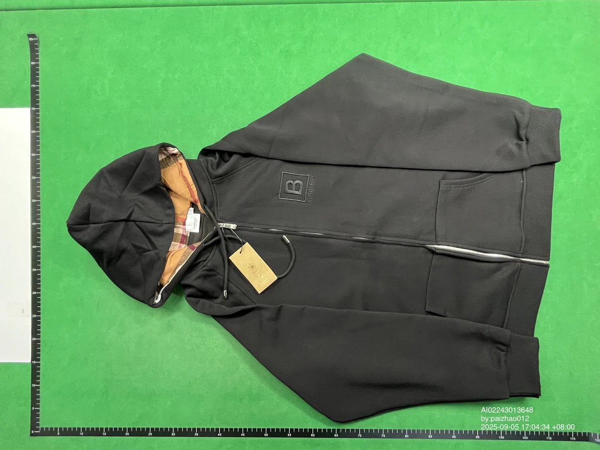 Elevate your casual wardrobe with this sleek black Burberry hoodie featuring the iconic vintage check lining and subtle B logo embroidery.
