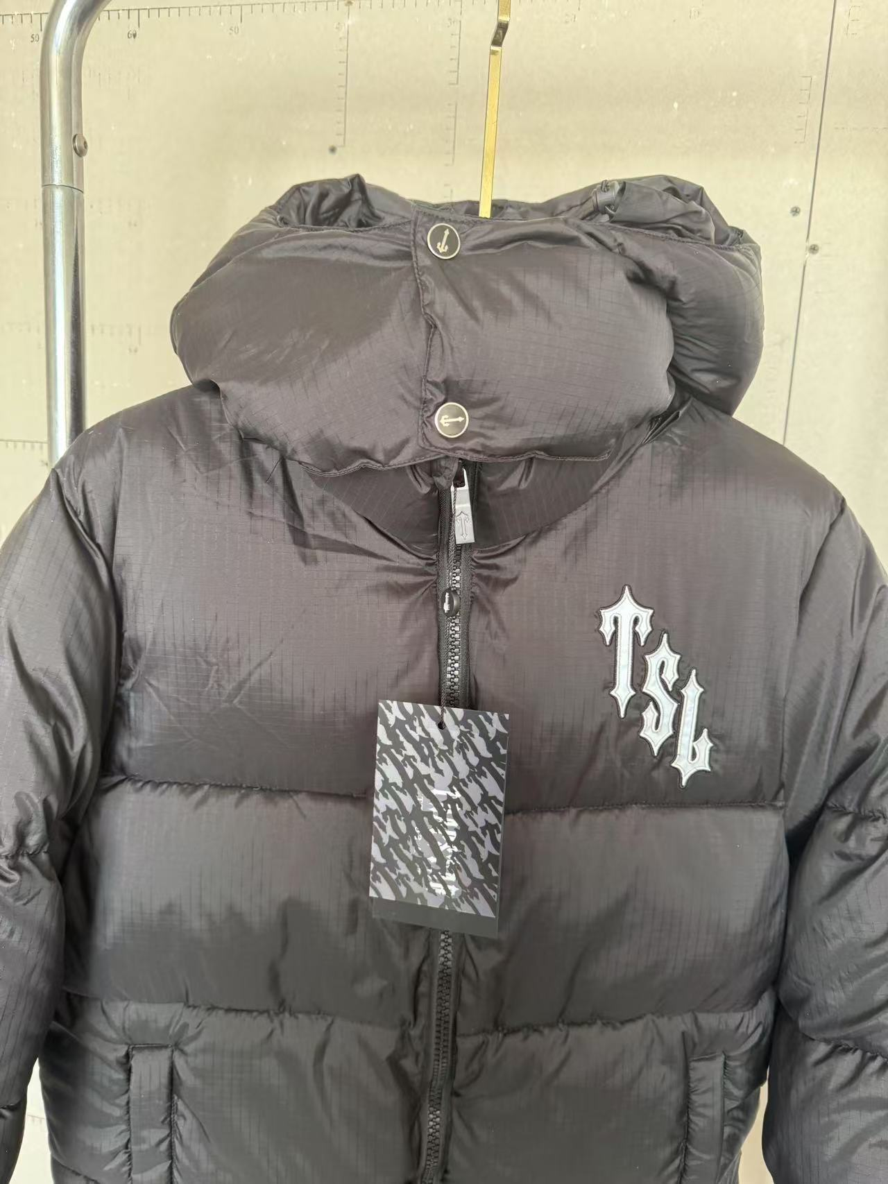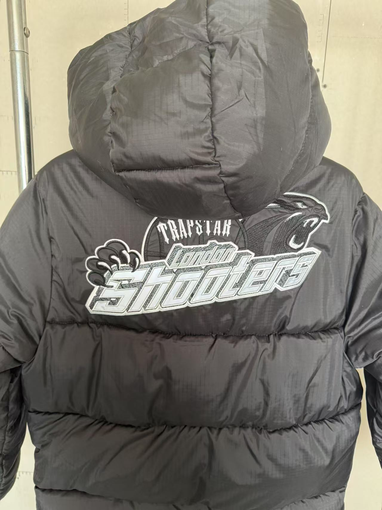Stylish black Burberry puffer jacket featuring a classic check-lined hood and logo patch. Perfect for cold weather with premium insulation and timeless design.
