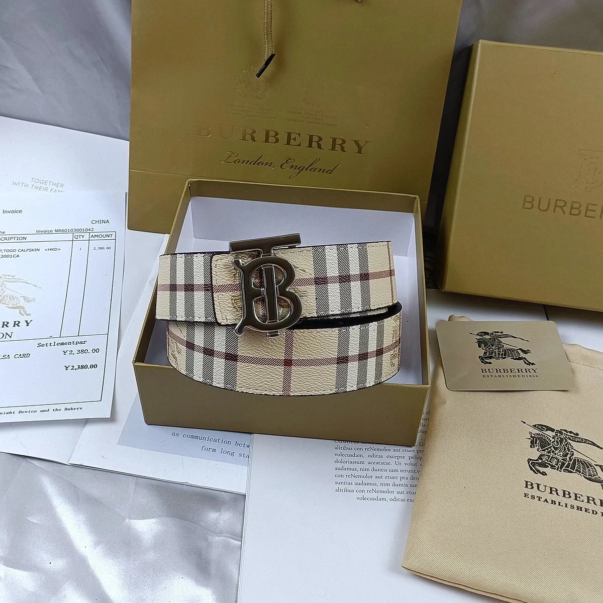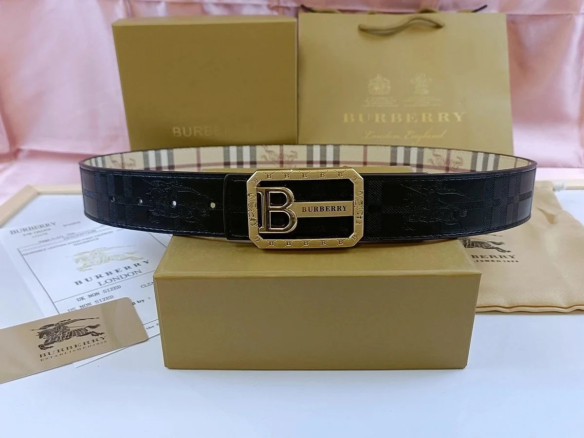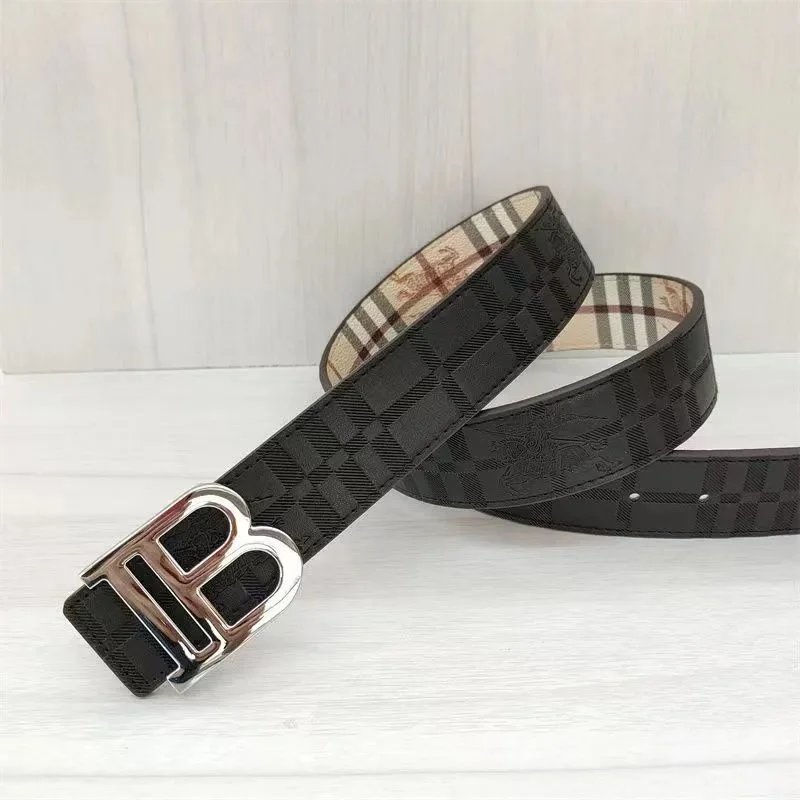 Elevate your style with this authentic Burberry check belt featuring a signature horse buckle and premium leather. Available in classic black and beige patterns with gold and silver hardware.