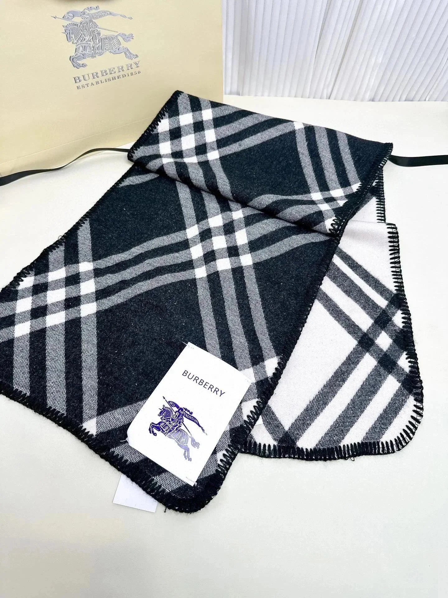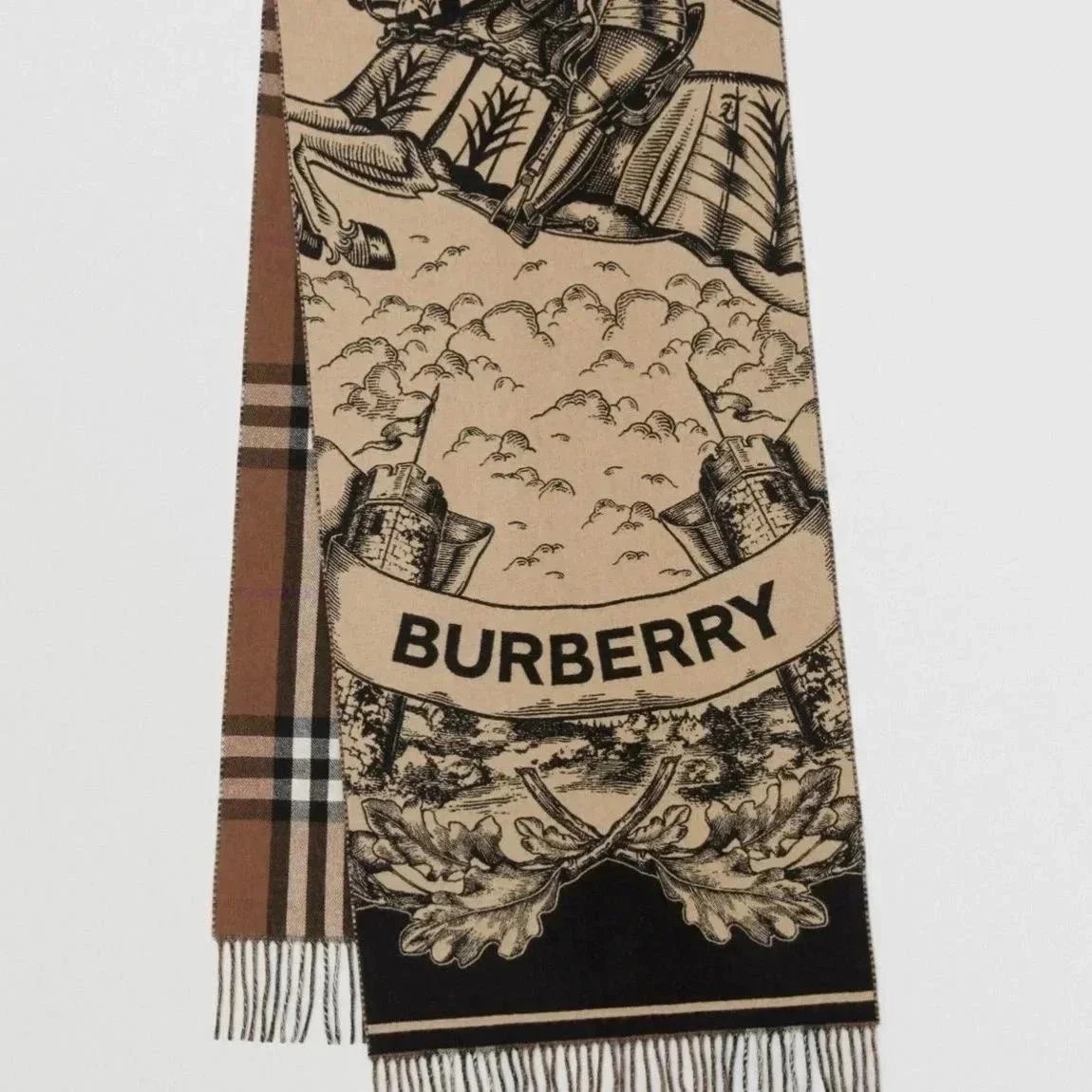 Elegant Burberry check cashmere scarf in beige and black, featuring classic fringed edges and premium craftsmanship. Perfect for adding timeless style to any outfit.