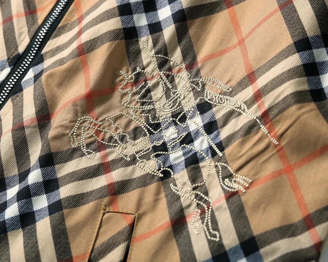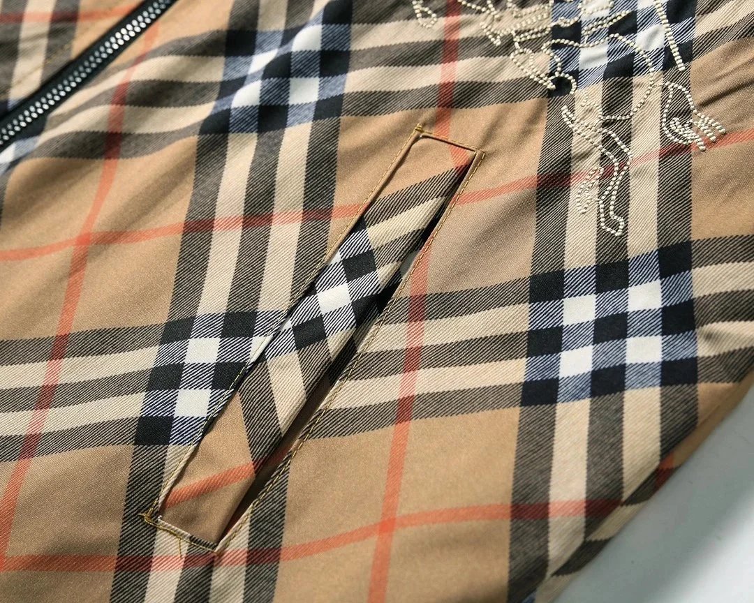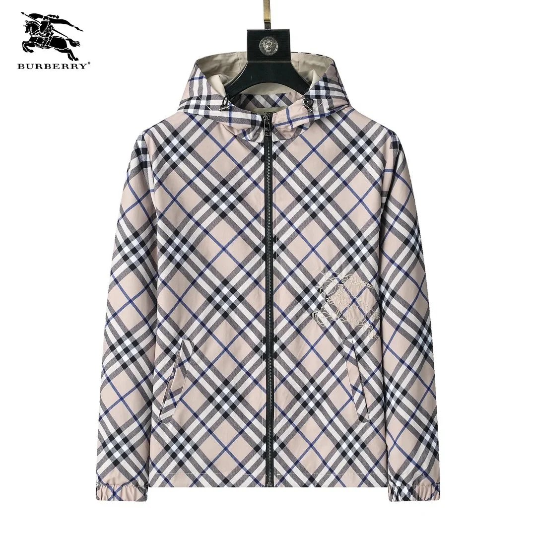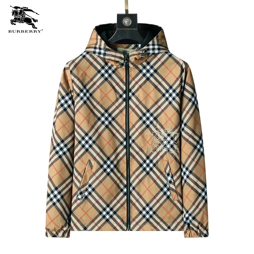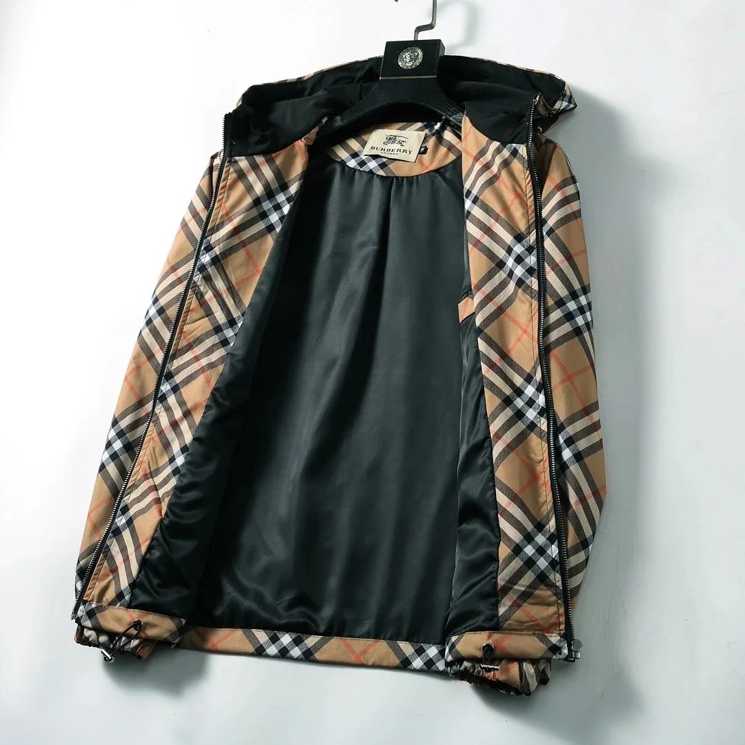 Stylish Burberry hooded jacket featuring the iconic check pattern in beige and black. Perfect for casual wear with premium quality and timeless design.
