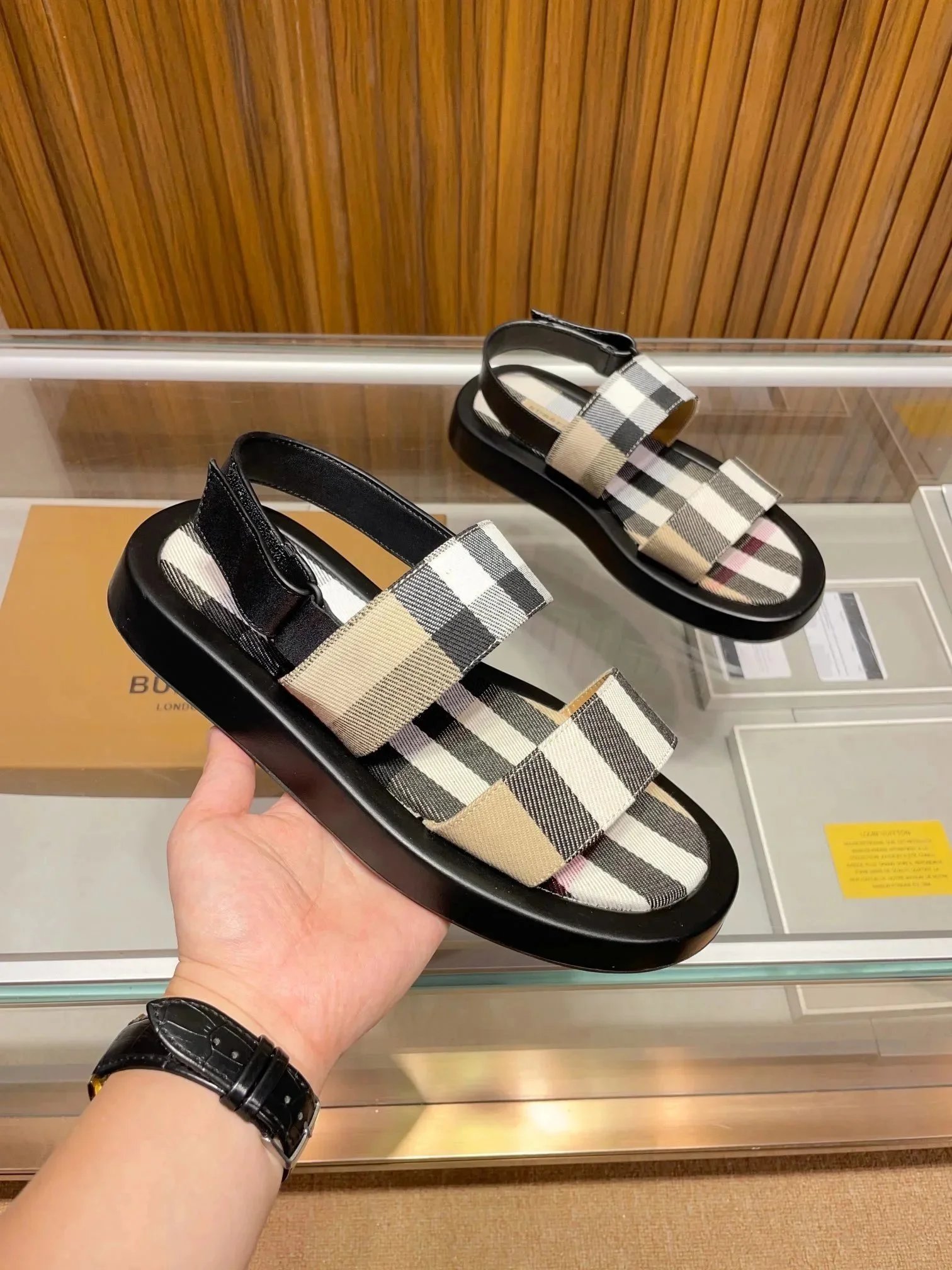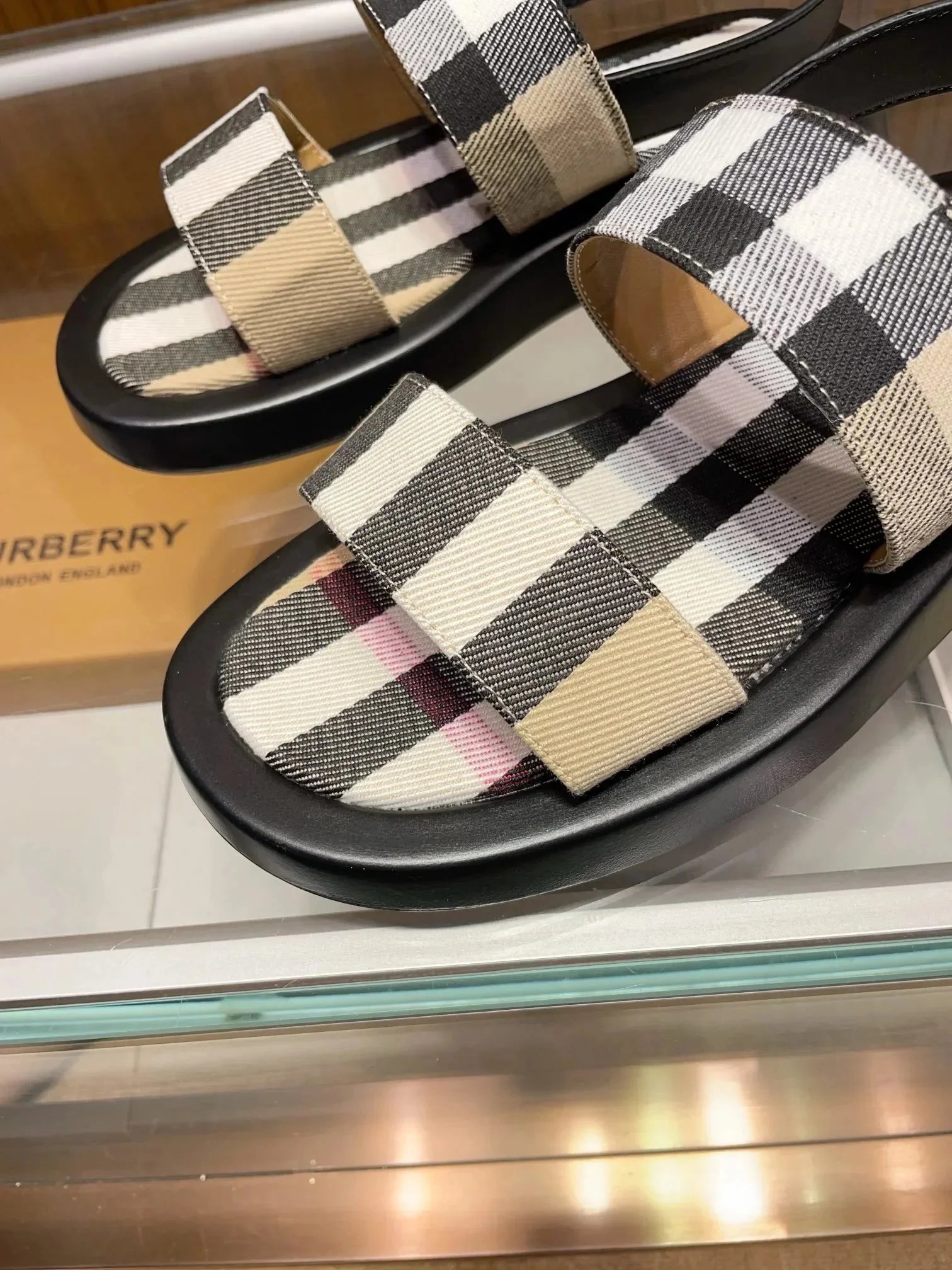 Elevate your summer style with authentic Burberry check print sandals. Crafted with signature heritage patterns and premium materials for timeless elegance.