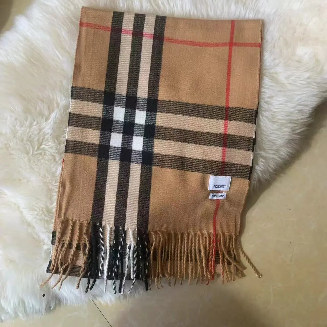 Authentic Burberry classic check scarves featuring the iconic equestrian knight logo and premium wool blend. Available in multiple colors including beige, red, black, and pink.