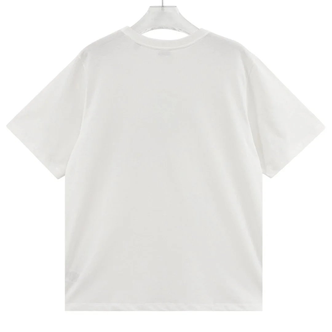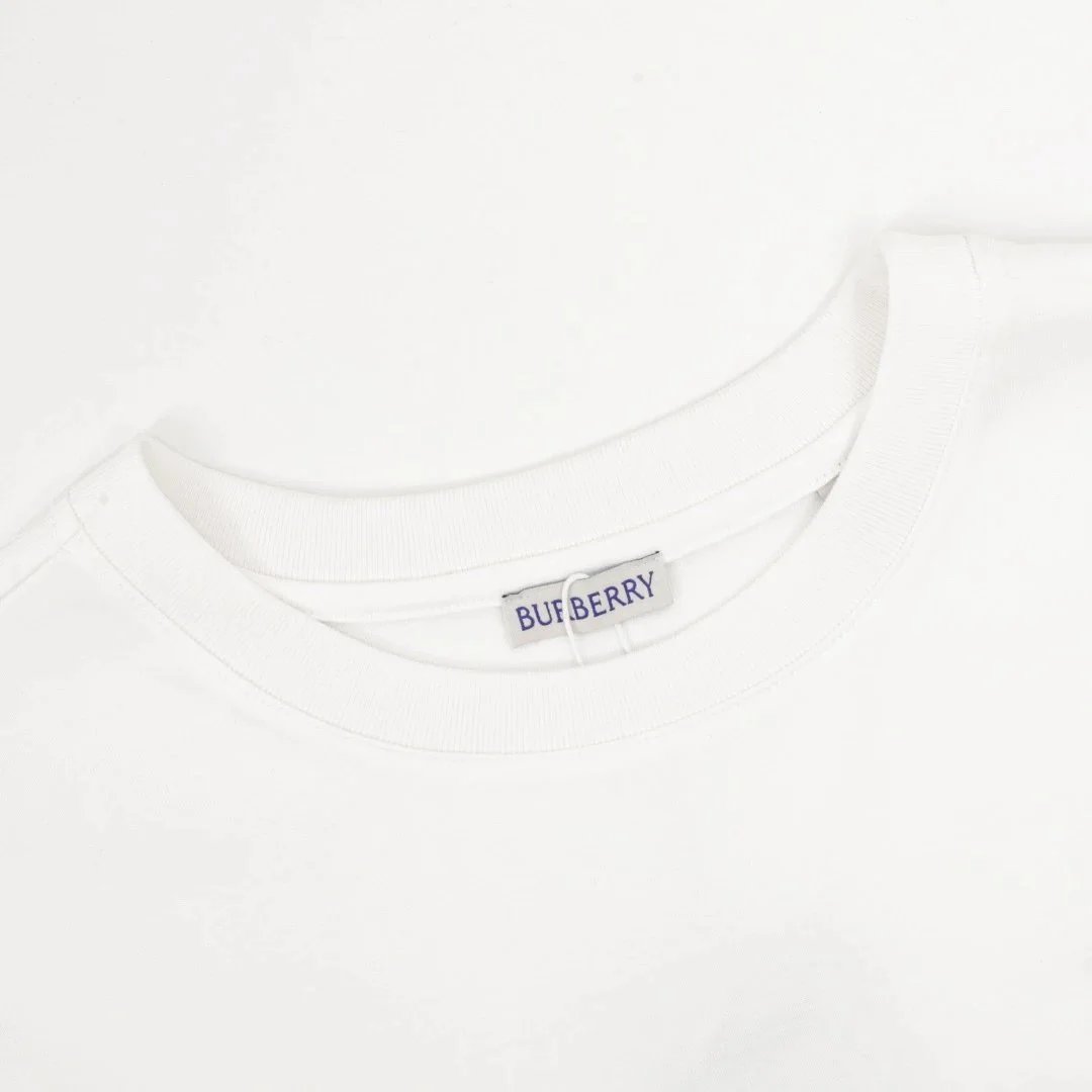 White Burberry T-shirt featuring a signature check pocket and 'London England' text. Designed for casual elegance with iconic branding.