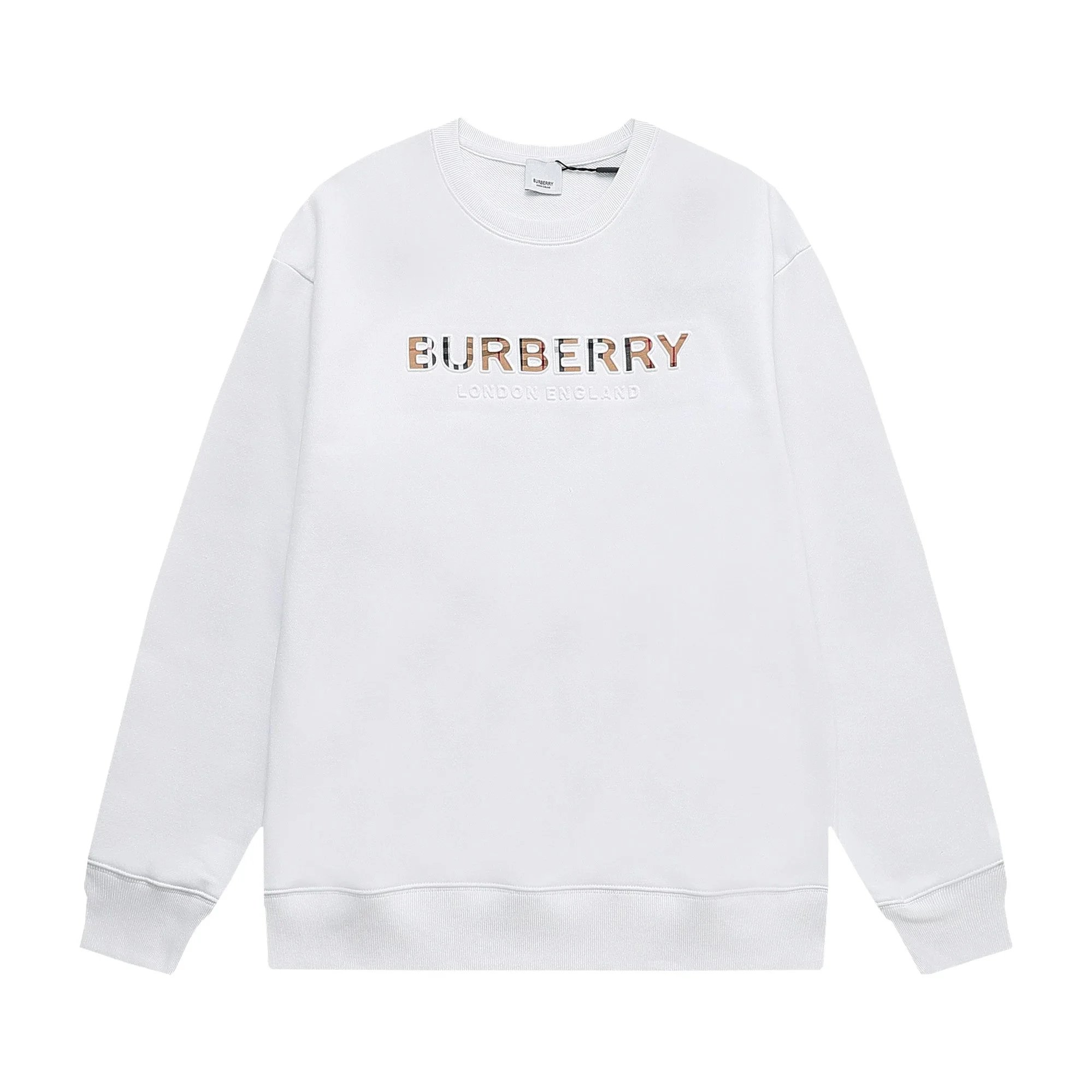 Elevate your casual wardrobe with this classic white Burberry sweatshirt featuring bold 'Burberry London England' branding for timeless luxury.