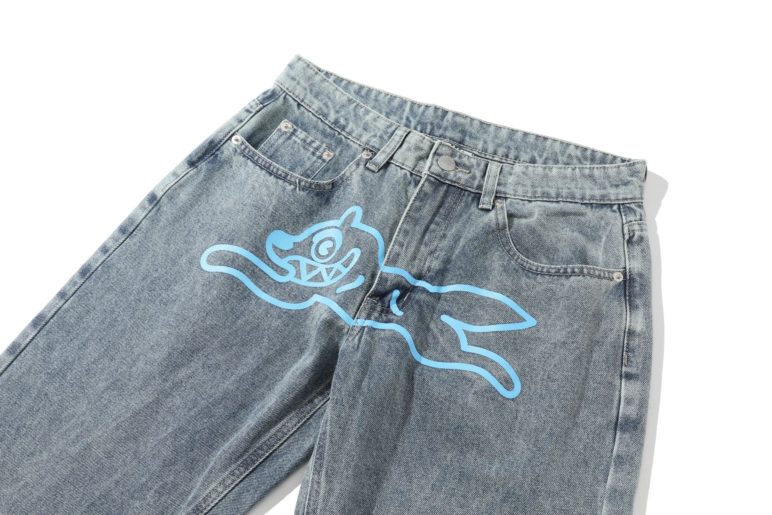 Premium white denim pants featuring distinctive embroidered C*Star logos on the back pockets. Crafted for style and comfort with a clean, tailored fit.