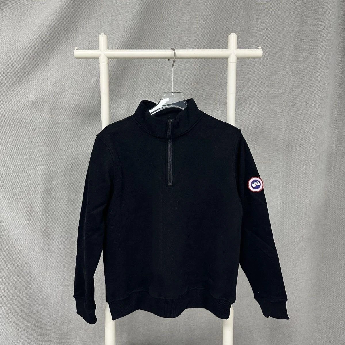 Stay warm and stylish with Canada Goose’s iconic half-zip sweatshirts featuring the signature arctic patch. Available in white, grey, and black for versatile everyday wear.