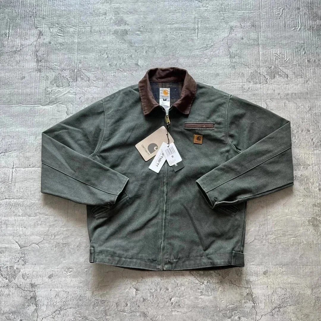 Sturdy Carhartt grey hooded jacket featuring fleece lining for warmth and durability. Perfect for cold weather with a classic workwear design.