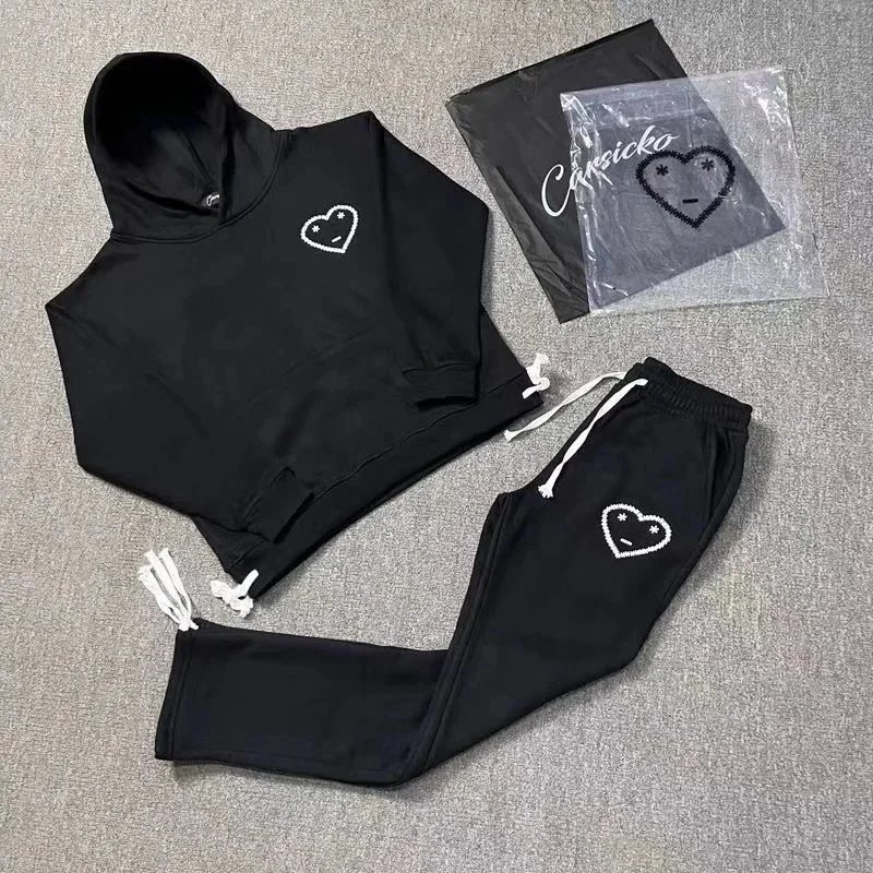 Shop the Carsicko heart logo hoodie and jogger set in black or grey. Perfect for casual comfort with a stylish embroidered heart detail.