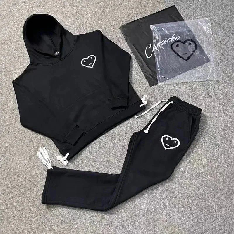 Shop the Carsicko heart logo hoodie and jogger set in black or grey. Soft, comfortable, and stylish for everyday wear.