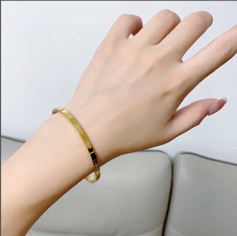 Elegant Cartier Love bracelet in polished gold, presented in a signature red box. A timeless symbol of love and luxury.