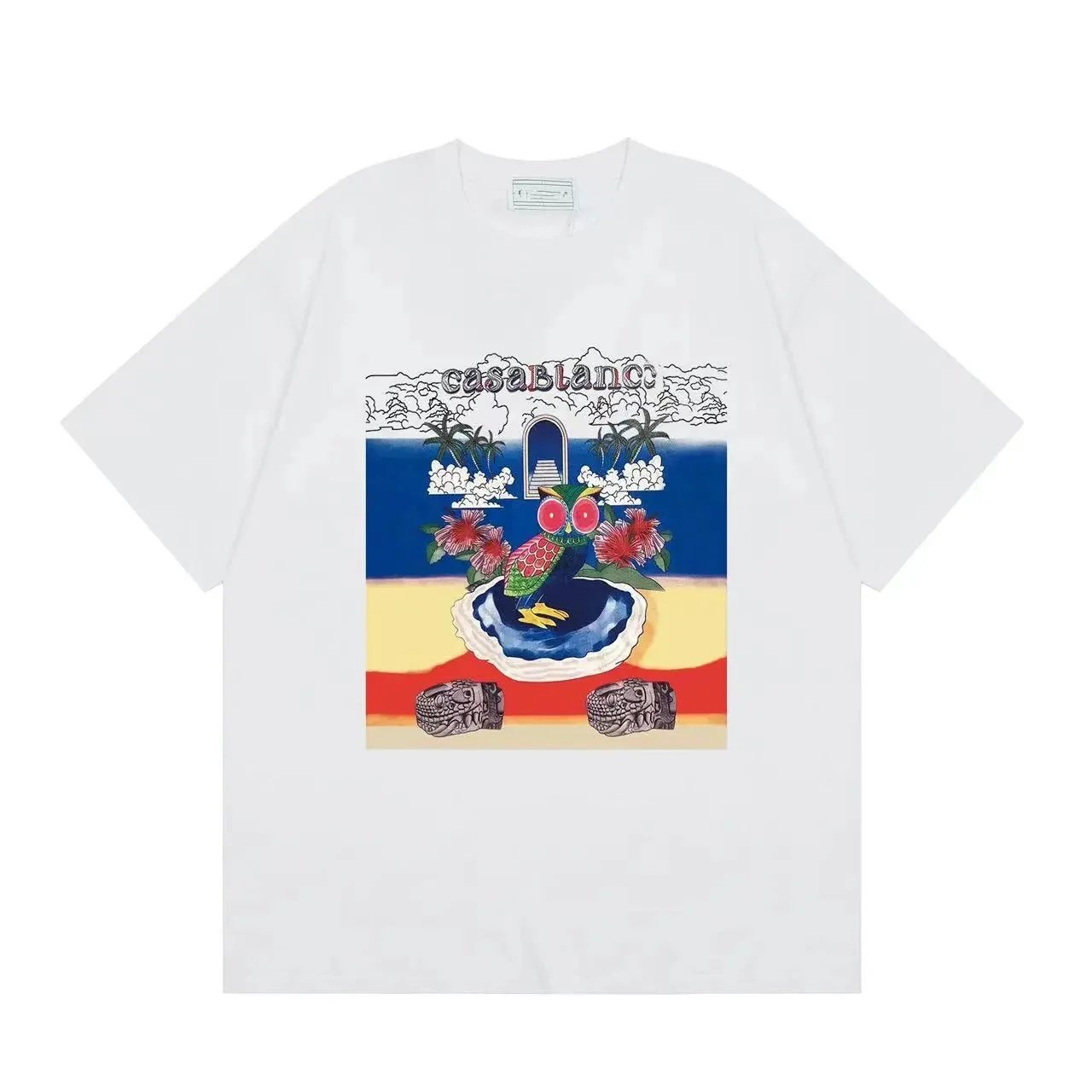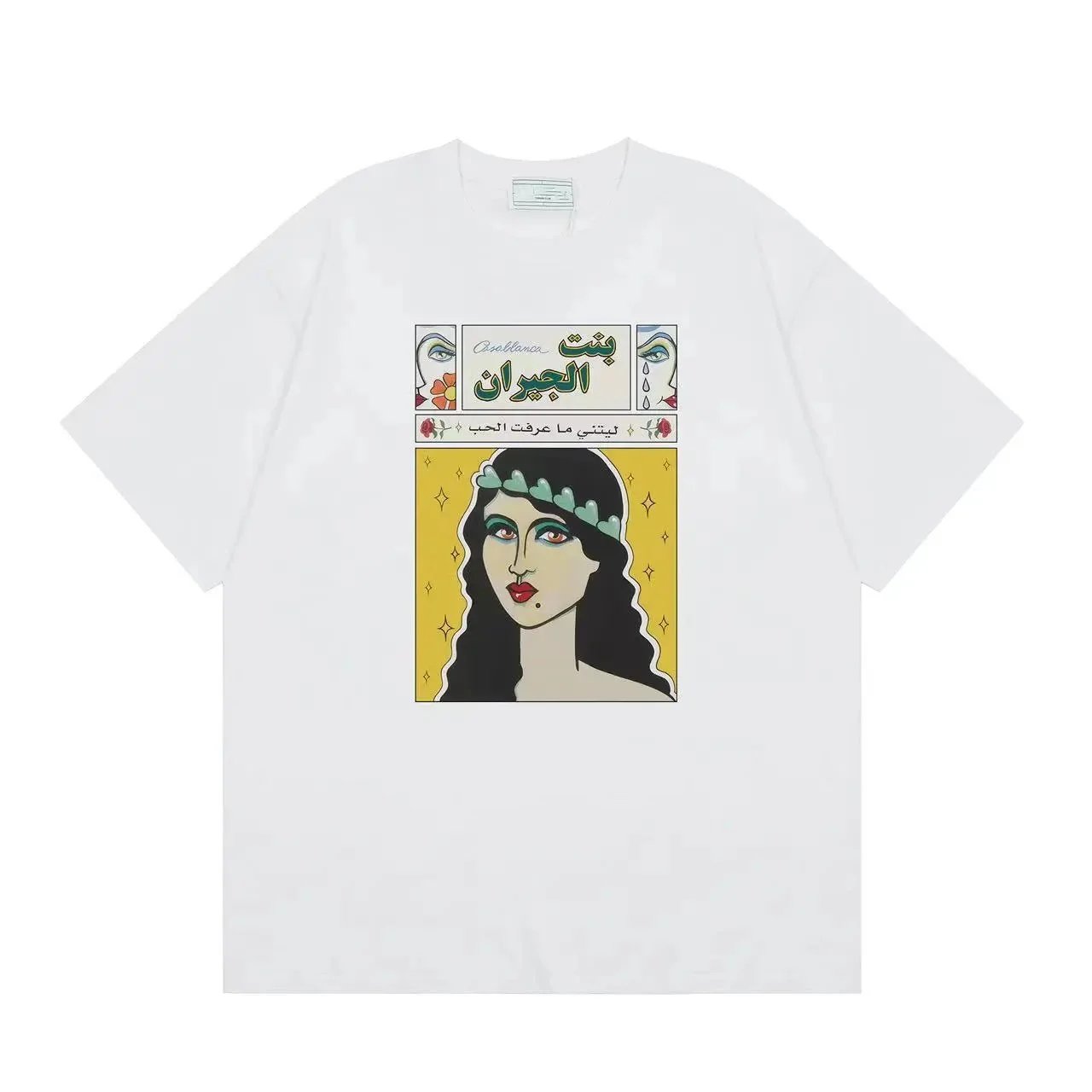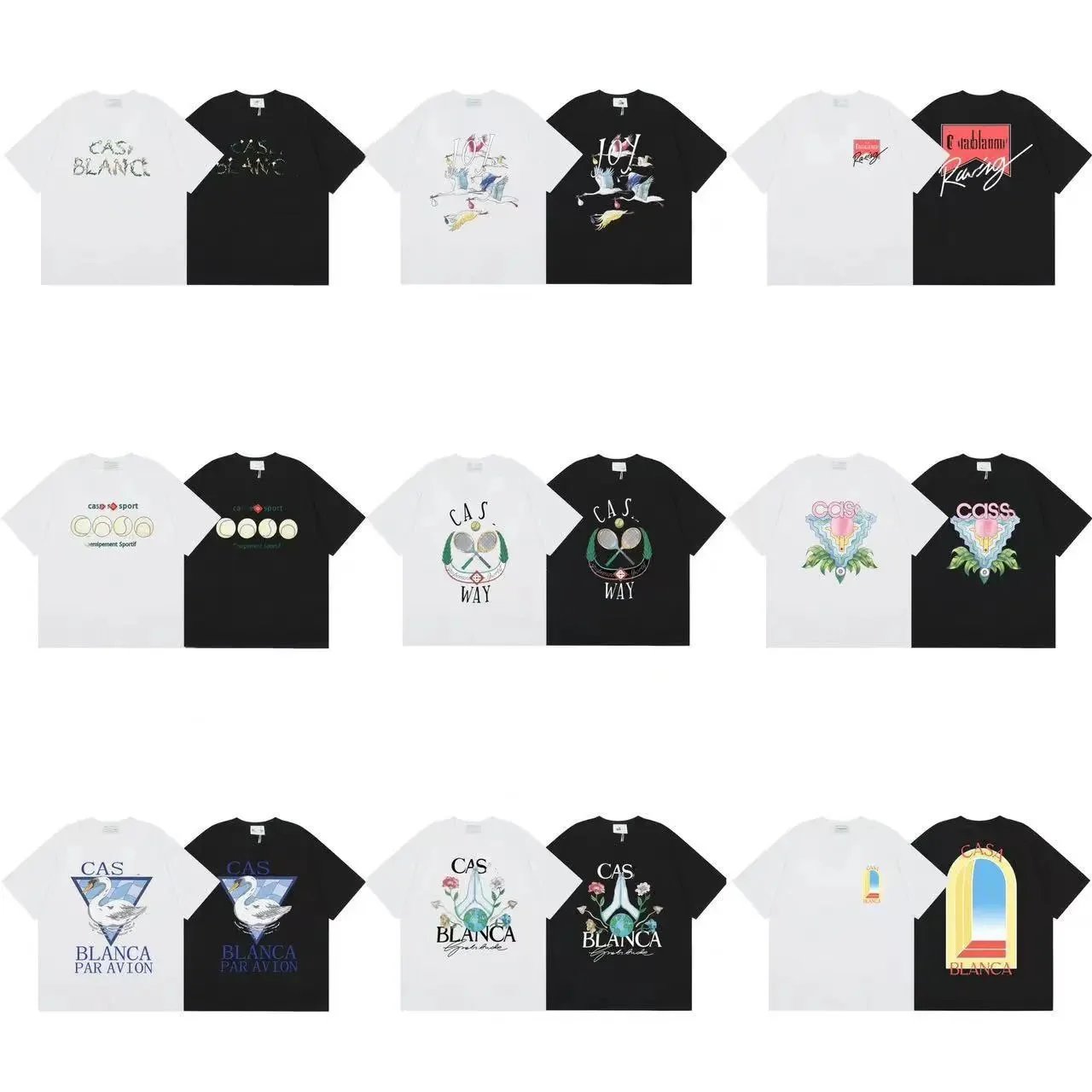 Discover the CAS BLANCA T-Shirt Collection featuring bold graphic designs including tennis rackets, swans, flowers, and retro typography on white and black cotton tees.